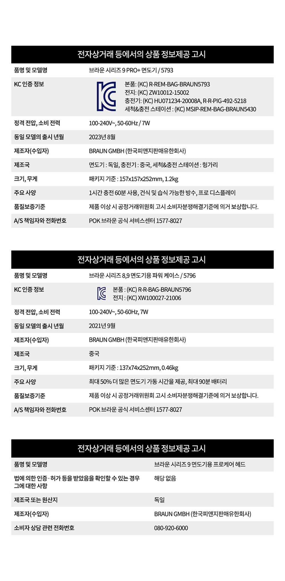 브라운 시리즈9 프로 플러스 9575cc 그라파이트 + 프로케어 해드