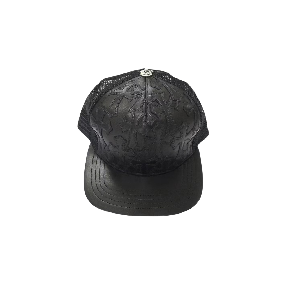 크롬하츠 세머테리 크로스 레더 스티치드 트러커햇 블랙