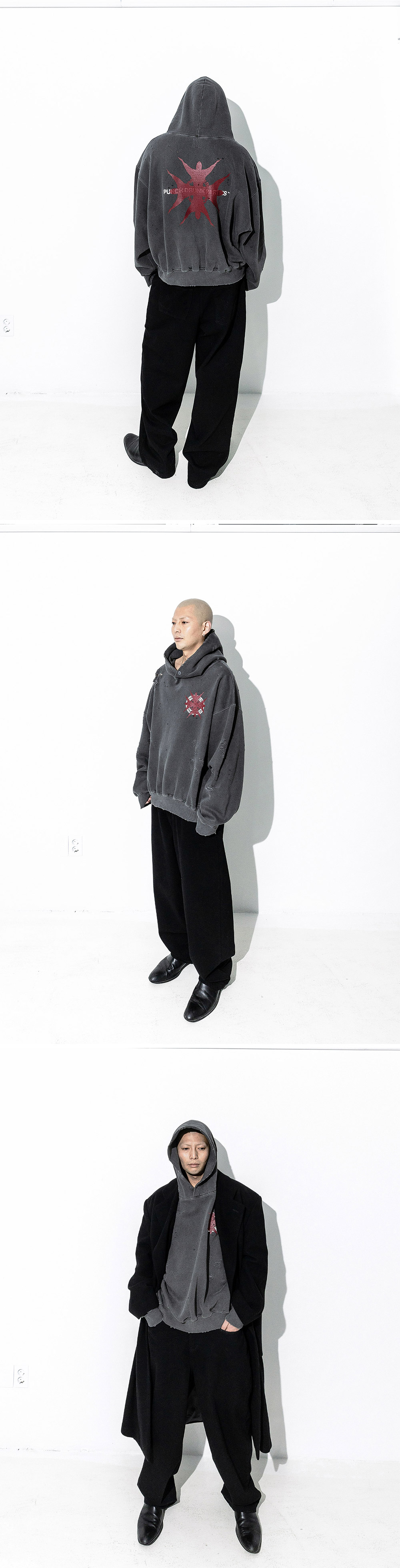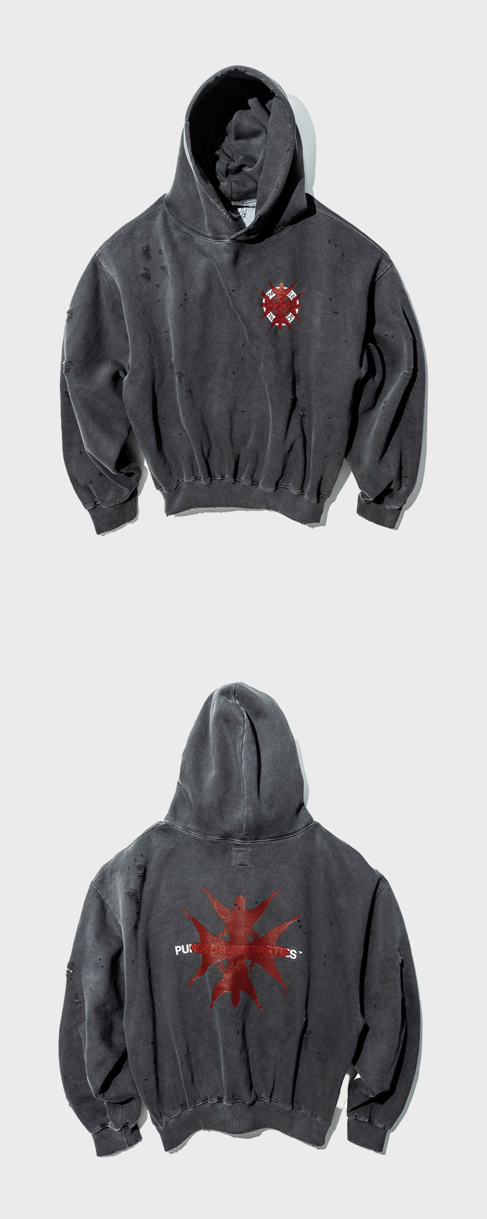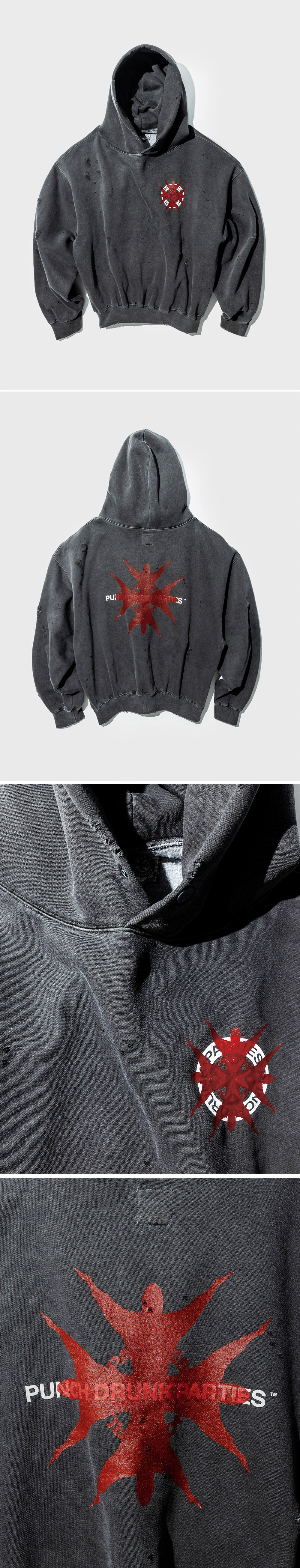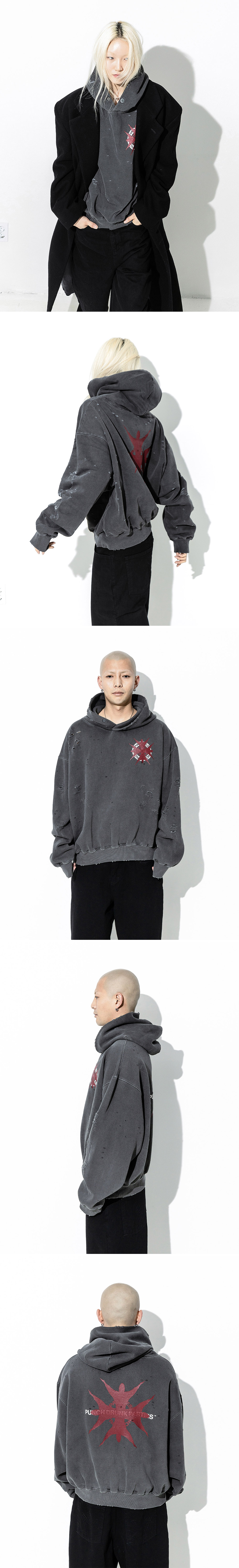 펀치 드렁크 파티즈 결속 가먼트 다이드 후디 차콜