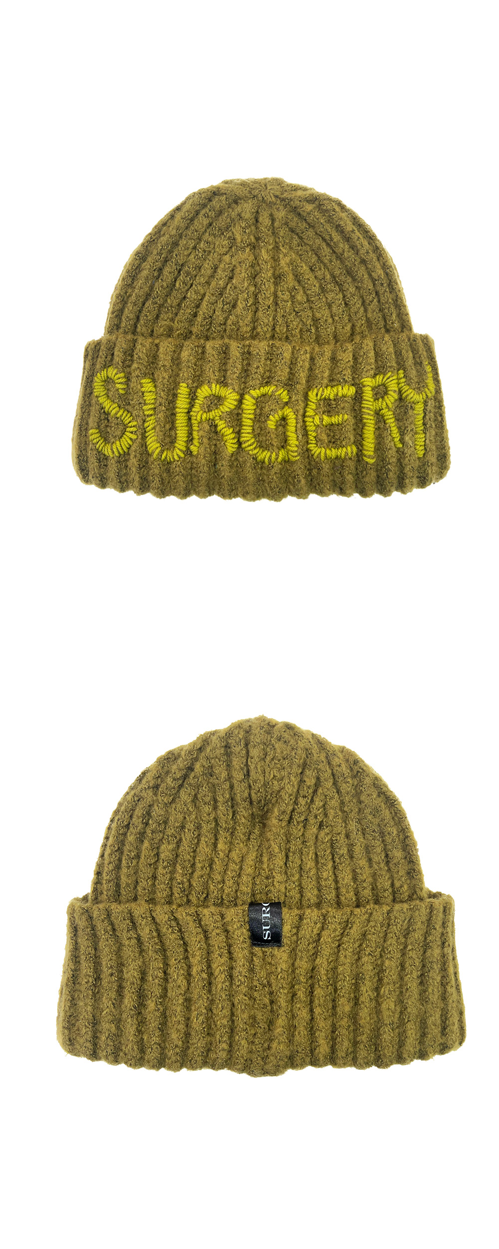 써저리 핸드 스티치 자수 로고 비니 올리브