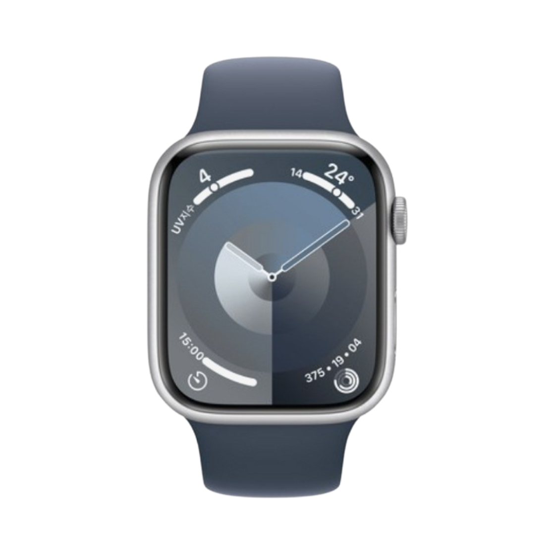 애플 워치 9 45mm GPS 실버 알루미늄 케이스 스포츠 밴드 S/M 스톰 블루 (국내 정식 발매 제품)