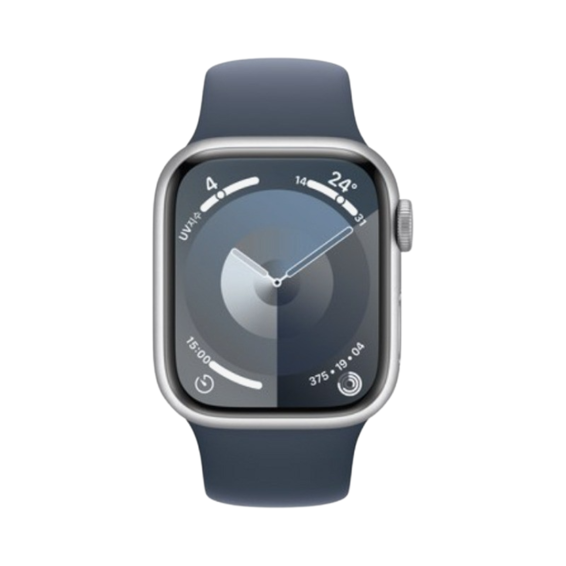 애플 워치 9 41mm 셀룰러 실버 알루미늄 케이스 스포츠 밴드 S/M 스톰 블루 (국내 정식 발매 제품)