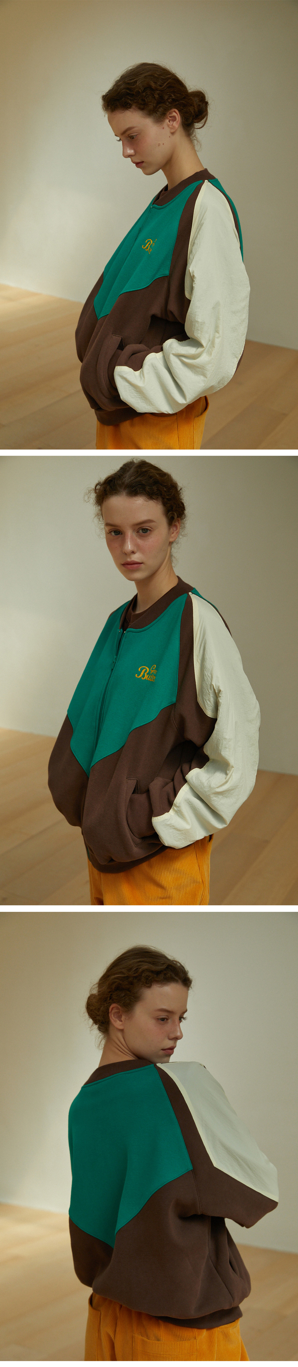 그린버터 우먼 윈드 브레이커 웜 스웻 집업 브라운 버터