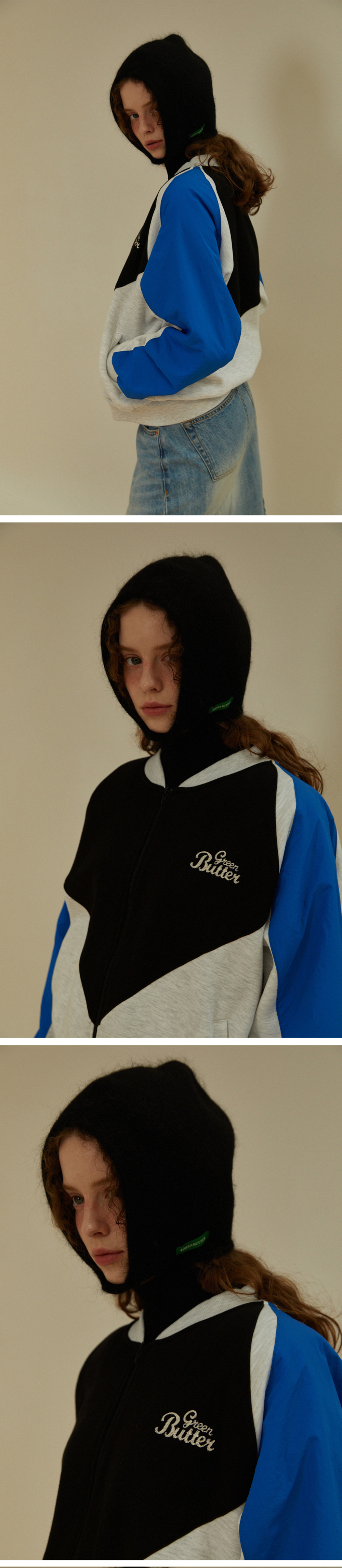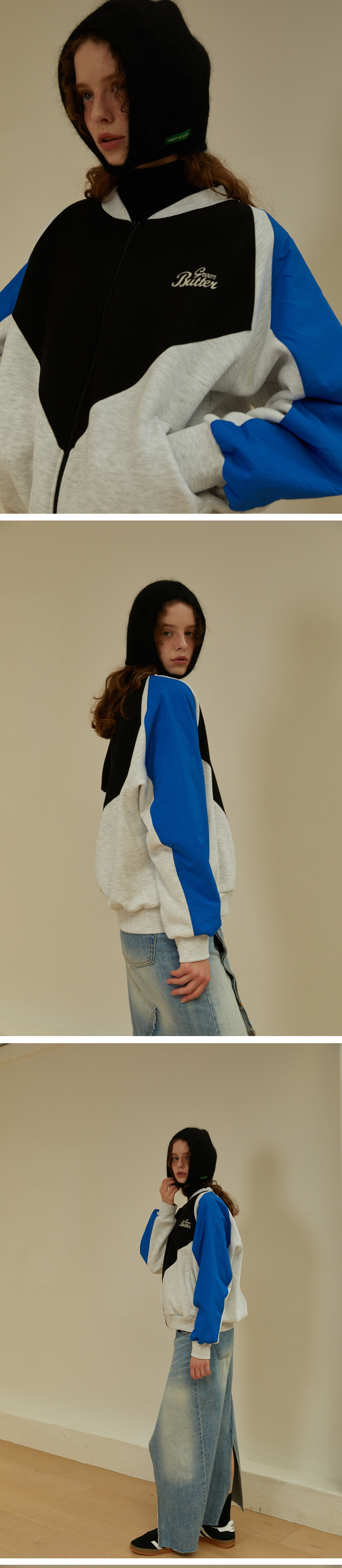 그린버터 우먼 윈드 브레이커 웜 스웻 집업 멜란지 블루