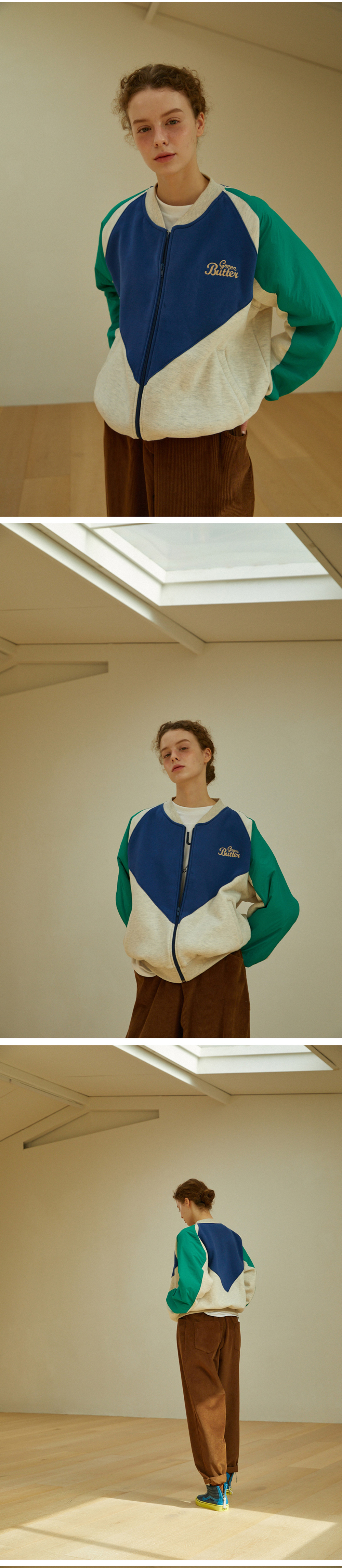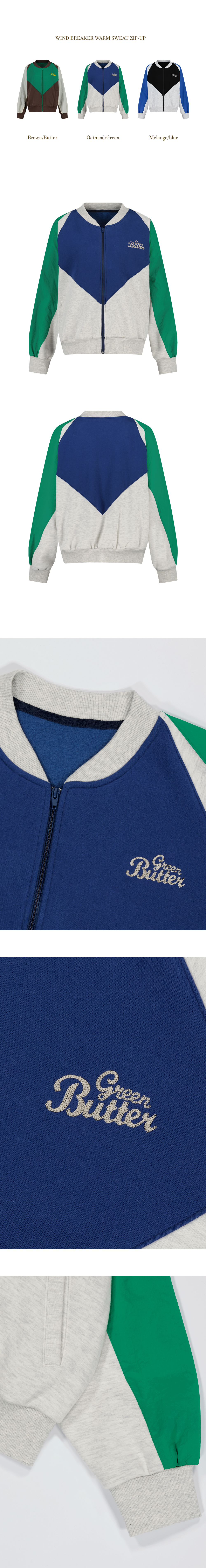 그린버터 우먼 윈드 브레이커 웜 스웻 집업 오트밀 그린
