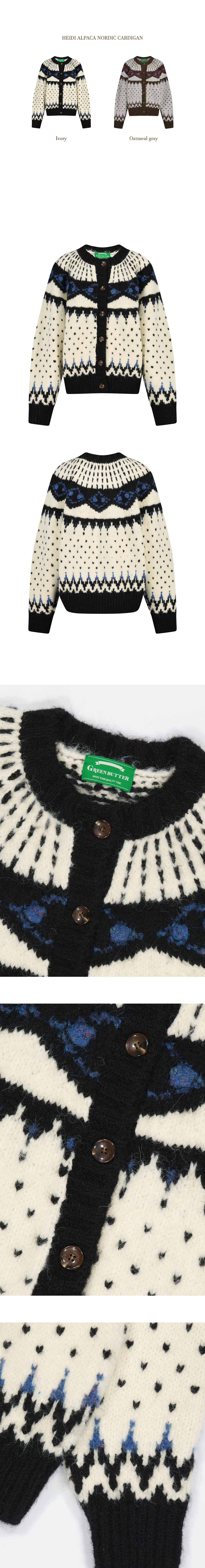 그린버터 우먼 하이디 알파카 노르딕 가디건 아이보리