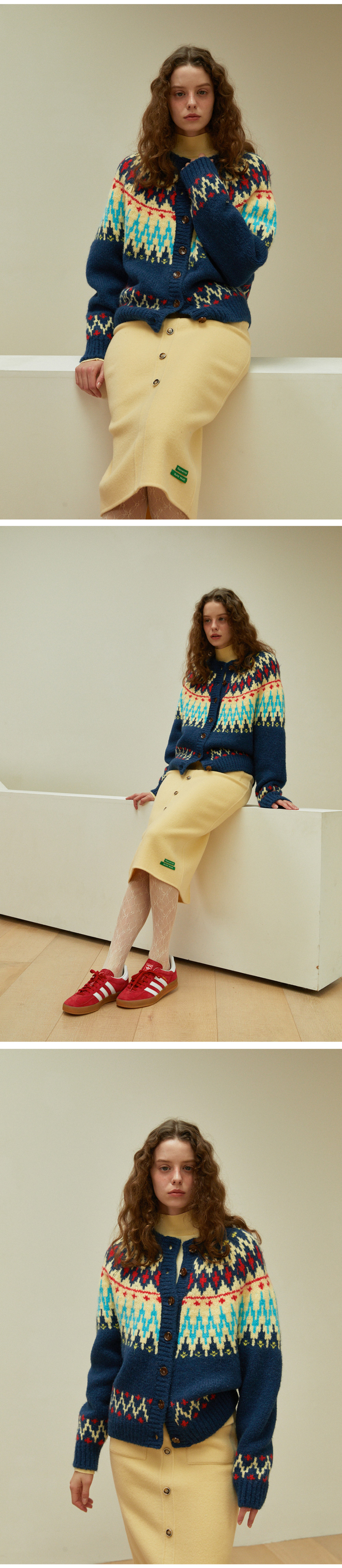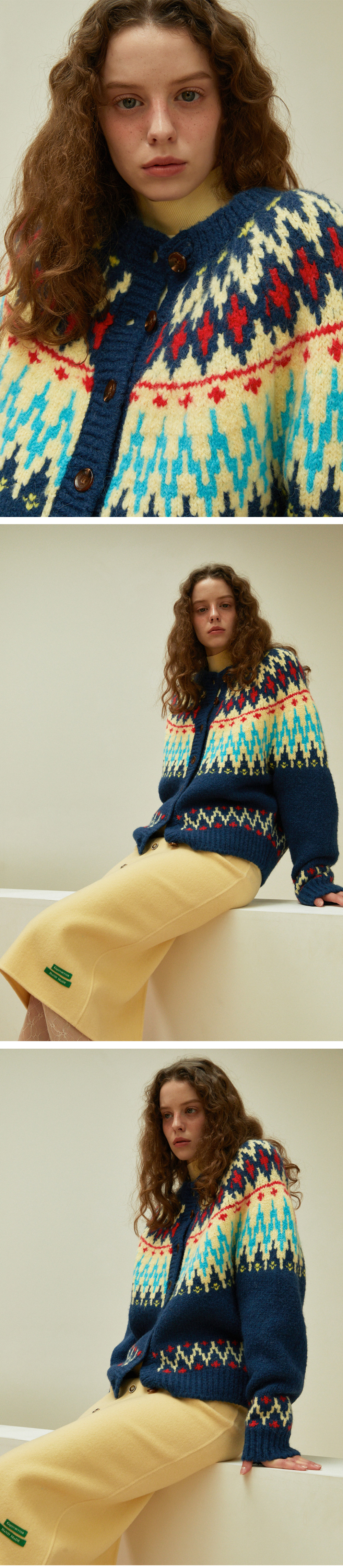 Greenbutter Women Zigzag Nordic Alpaca Cardigan Navy