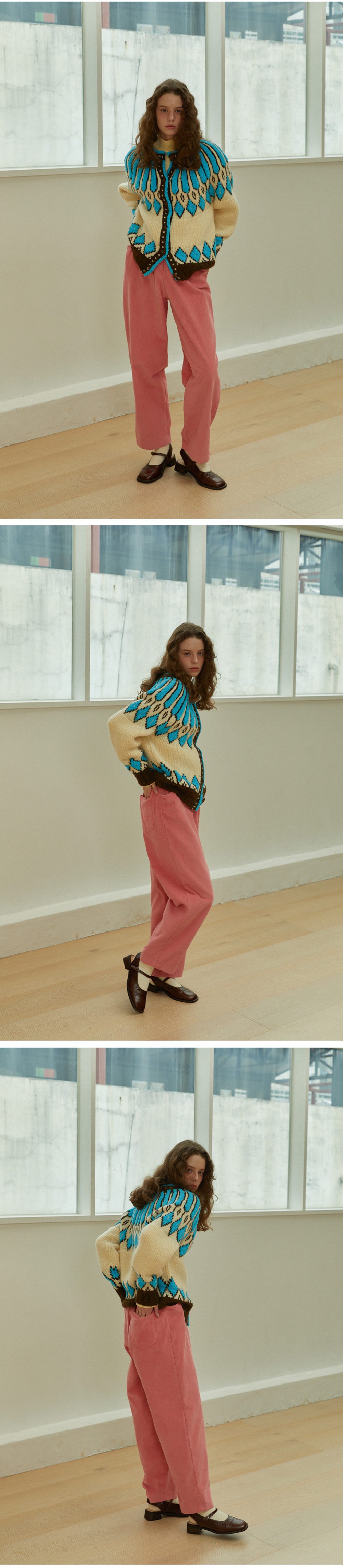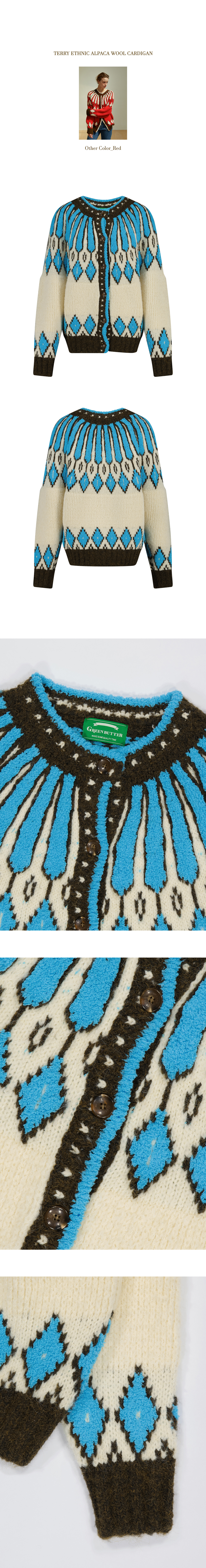 그린버터 우먼 테리 에스닉 알파카 울 가디건 아이보리