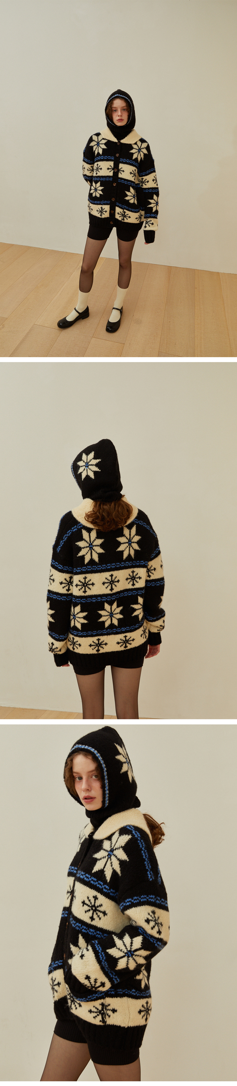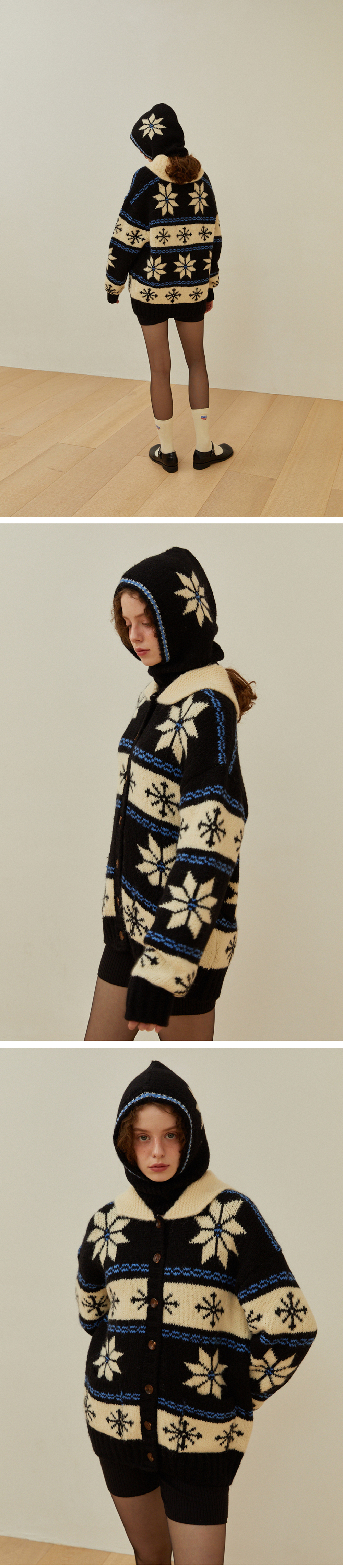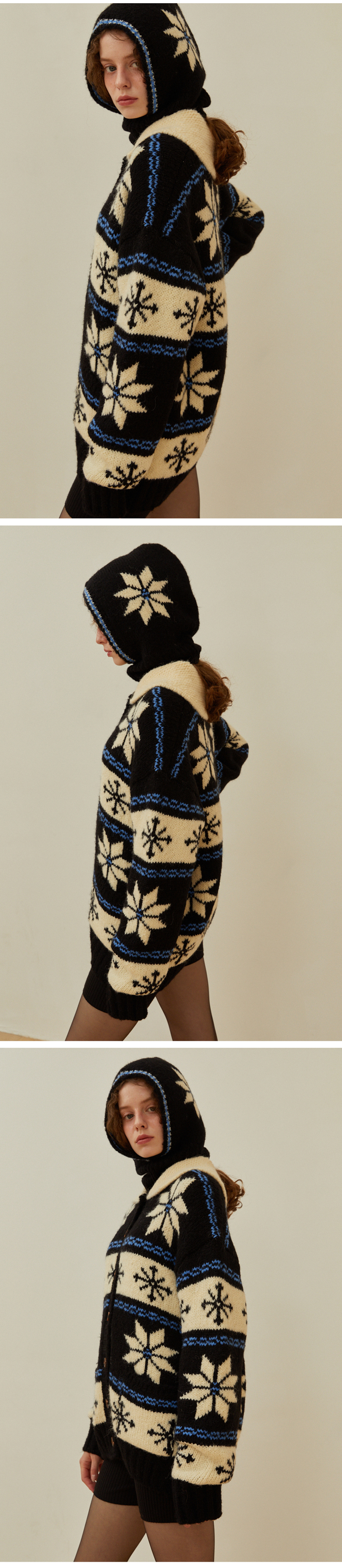 턱 밑과 광대를 완전히 감싸며, 스판함유로 편안한 착용감 눈꽃 모양의 시즌 디자인이 돋보이는 제품 울, 알파카 특유의 기모효과와 컬감 터치감이 실키하고 보온성이 높음 포근하고 굵은 원사를 높은 밀도로 제작한 바라클라바 코위찬 가디건과 세트로 구성하여 코디 가능한 제품 자연의 원료로 제작된 시그니처향과 함께 배송됩니다.