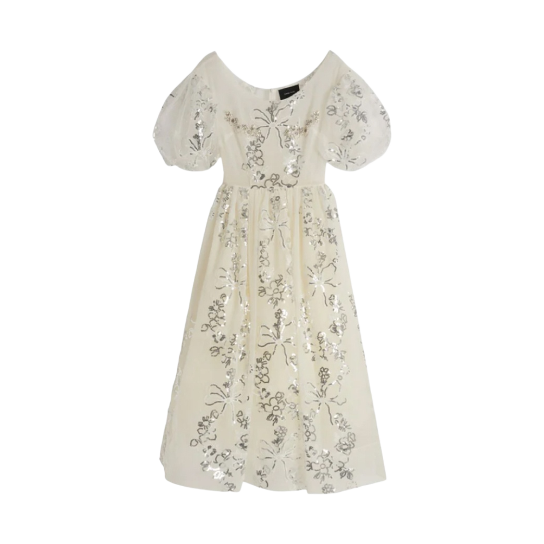 (W) Simone Rocha Sequin Flower Tutu Dress Ivory White Silver