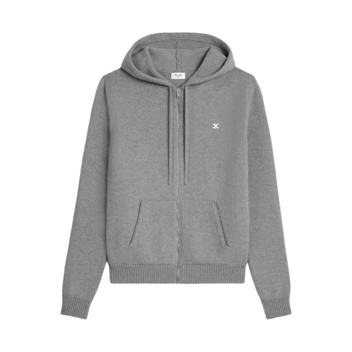 Celine Triomphe Hooded Sweater in Wool Cashmere Medium Grey
