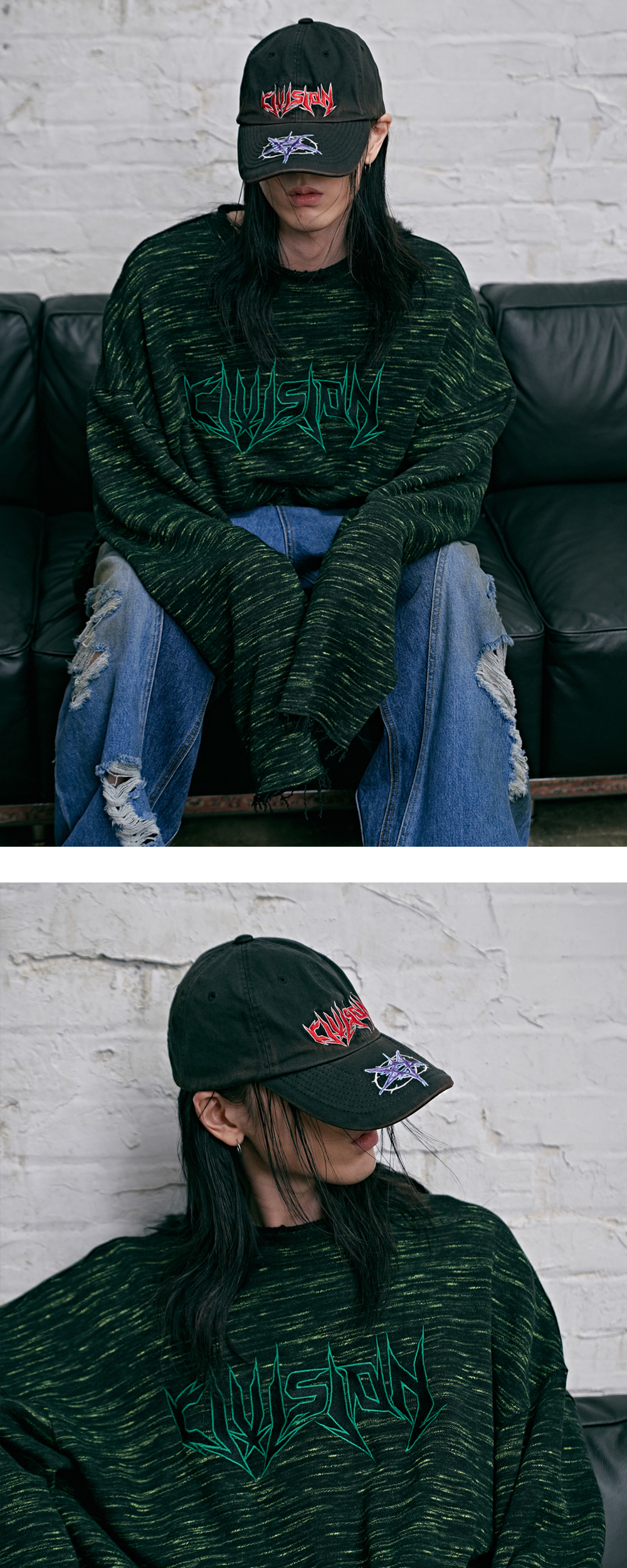 CIVISION BY CSC FALL-WINTER 2023 'CANNER' [Product Information] -Faded effect -Death core logo embroidered at front -Vision logo embroidered at back -Utofia concept logo embroidered at strap -Adjustable velcro tap -Large fit [Model Spec & Size] 181cm, 60kg (Size OS)
