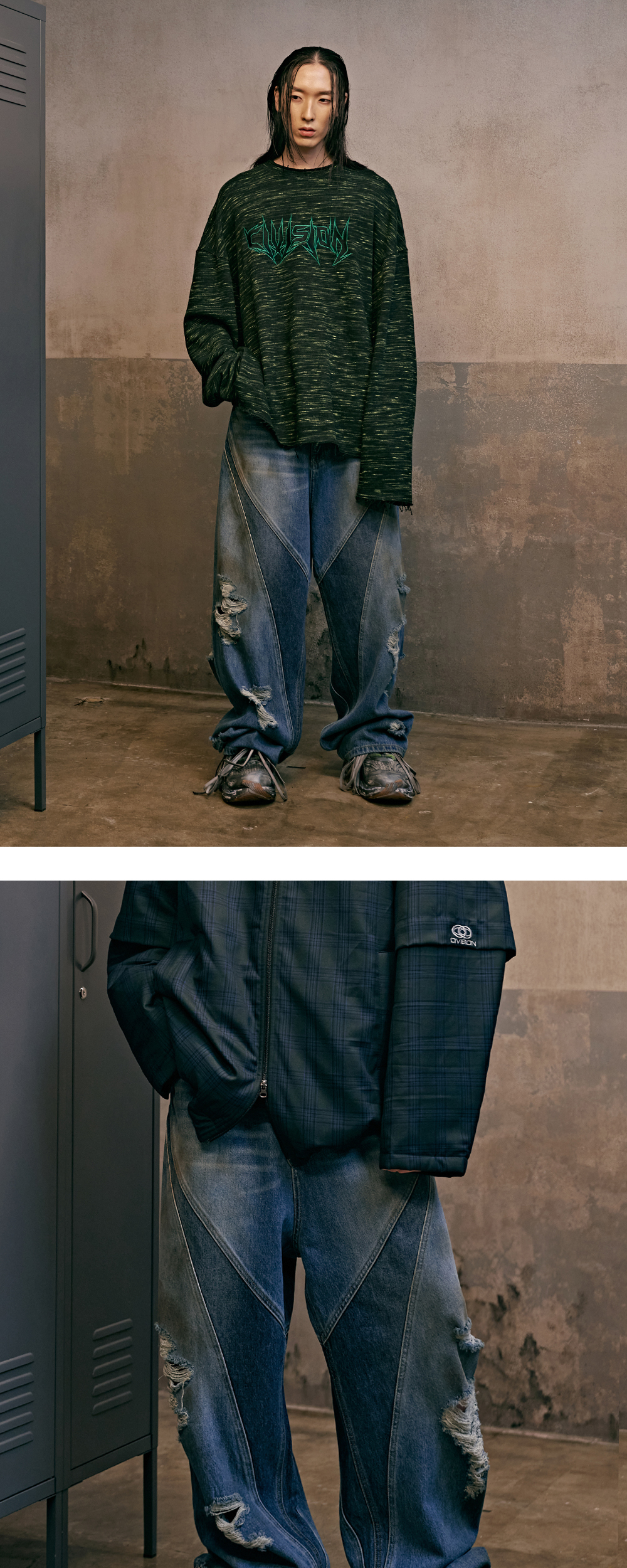 CIVISION BY CSC FALL-WINTER 2023 'CANNER' [Product Information] -Contrast washed detail -Distressed effect -Dirty effect -Side waist adjusters -Front button with zip fastening [Model Spec & Size] 181cm, 60kg (Size 2)