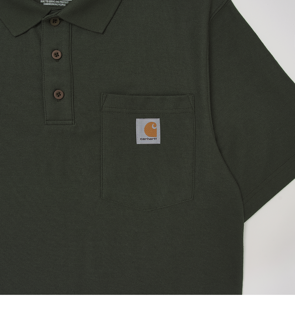칼하트 루즈핏 미드웨이트 레귤러 숏슬리브 포켓 폴로 모스