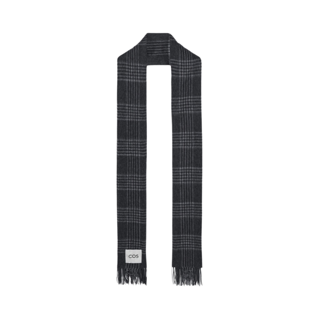 COS Wool Cashmere Blend Fringed Muffler Grey Checked