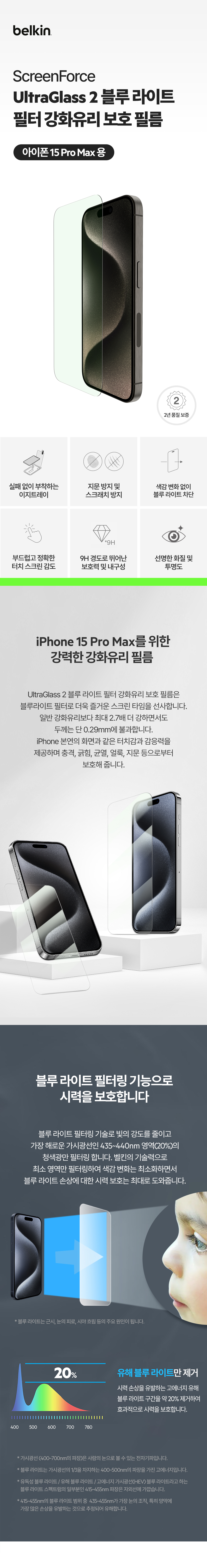 벨킨 아이폰15프로맥스 블루라이트 차단 강화유리필름 OVA142zz