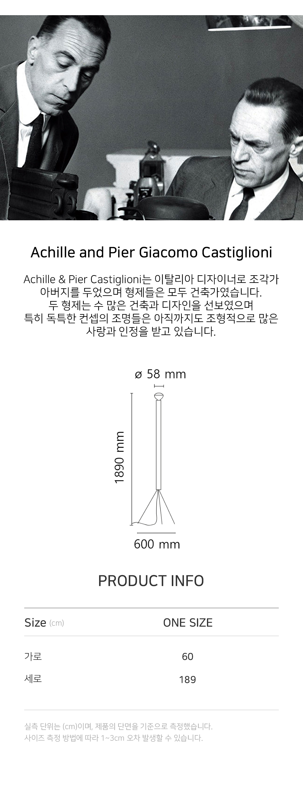 Castiglioni 형제의 조명입니다. 1954년 제작되었으나 현대적이고, 단순함과 독특함을 함께 가지고 있는 매력적인 플로어 램프입니다.