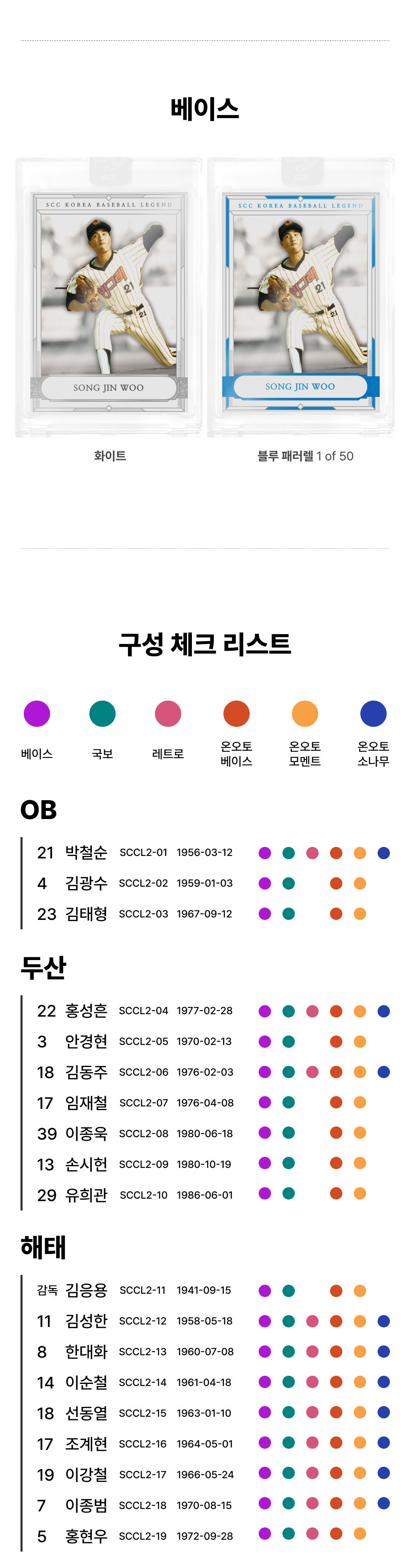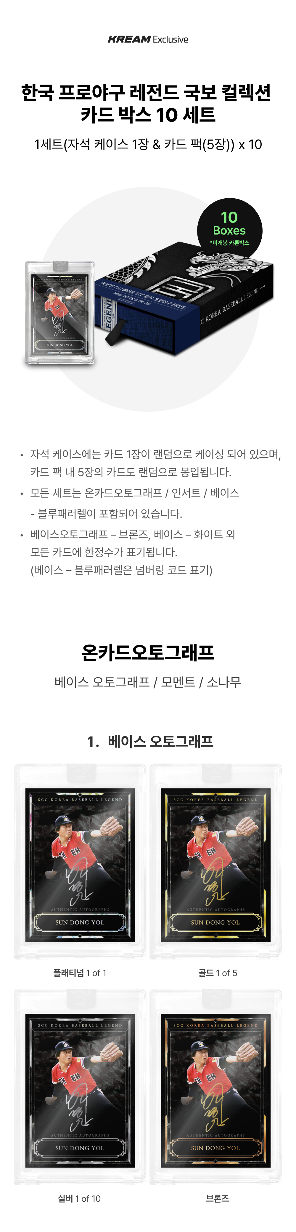 SCC 한국 프로야구 레전드 국보 컬렉션 카드 박스 10개 세트 - 자석 케이스(10장) & 카드 팩(50장)