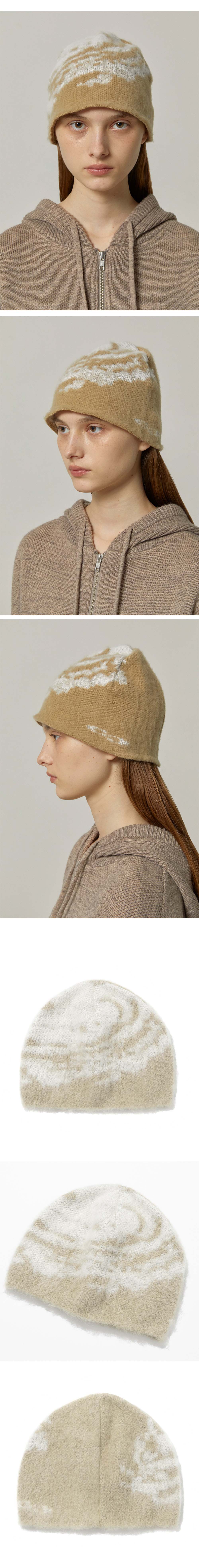 - 구름 형상의 그래픽을 밀로만의 감성으로 보여주는 비니 - 니트 조직 헤어감과 조화를 이루며 독특한 무드 표현 - 밀로의 시그니쳐 나선형 로고 자수 디테일 - 수축 및 제품 원형 보존성이 뛰어난 혼용 원사 사용 - 다양한 코디에 활용할 수 있도록 고안한 컬러 기획