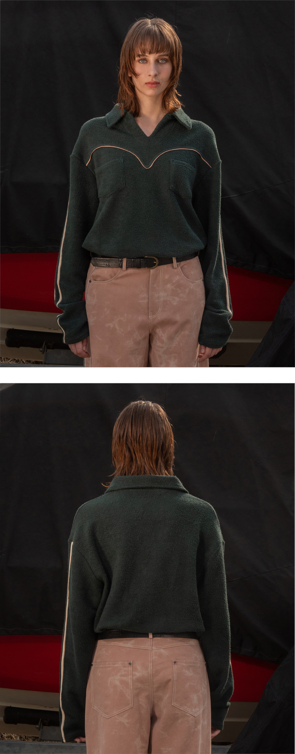 Kyo Sporty Western Double Pocket Tee Dark Green 쿄 스포티 웨스턴 더블 포켓 티 다크 그린