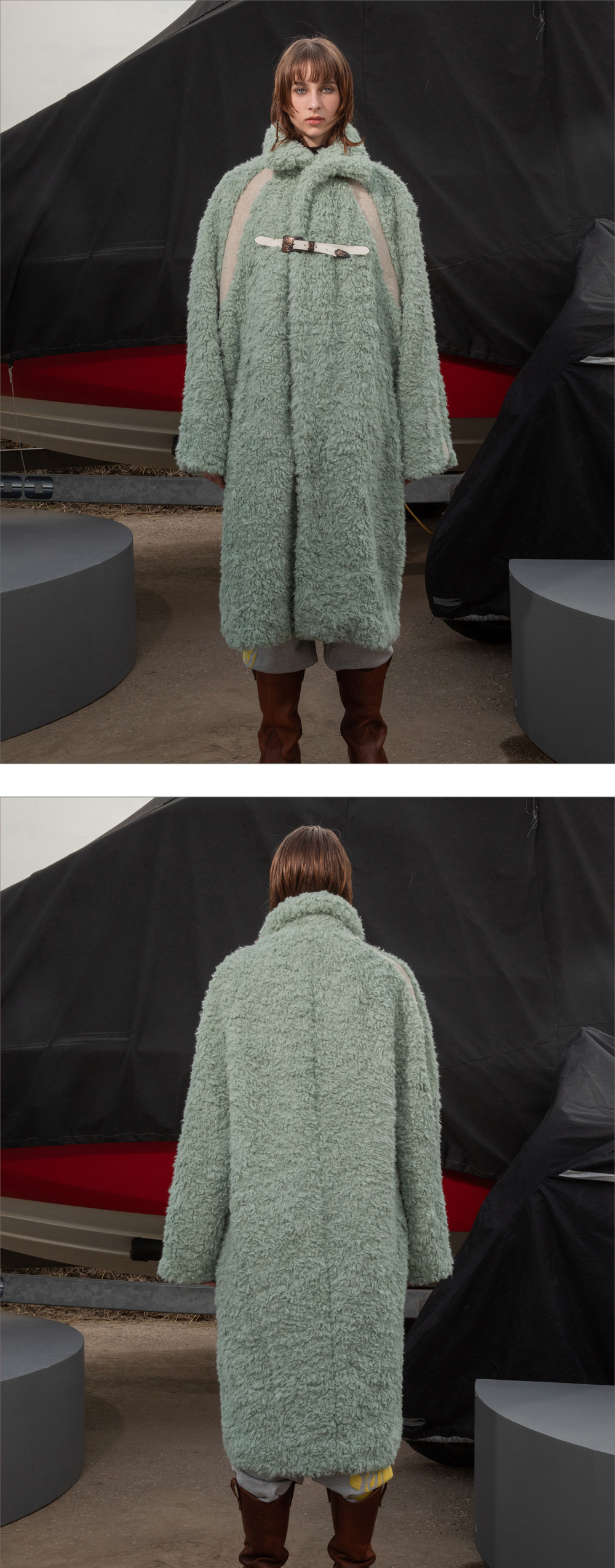 해당 상품은 예약 배송 상품으로, 주문일 기준 7일 이상 소요됩니다. Kyo Shaggy Fauxed Fur Long Coat 쿄 쉐기 포 퍼 롱 코트 민트