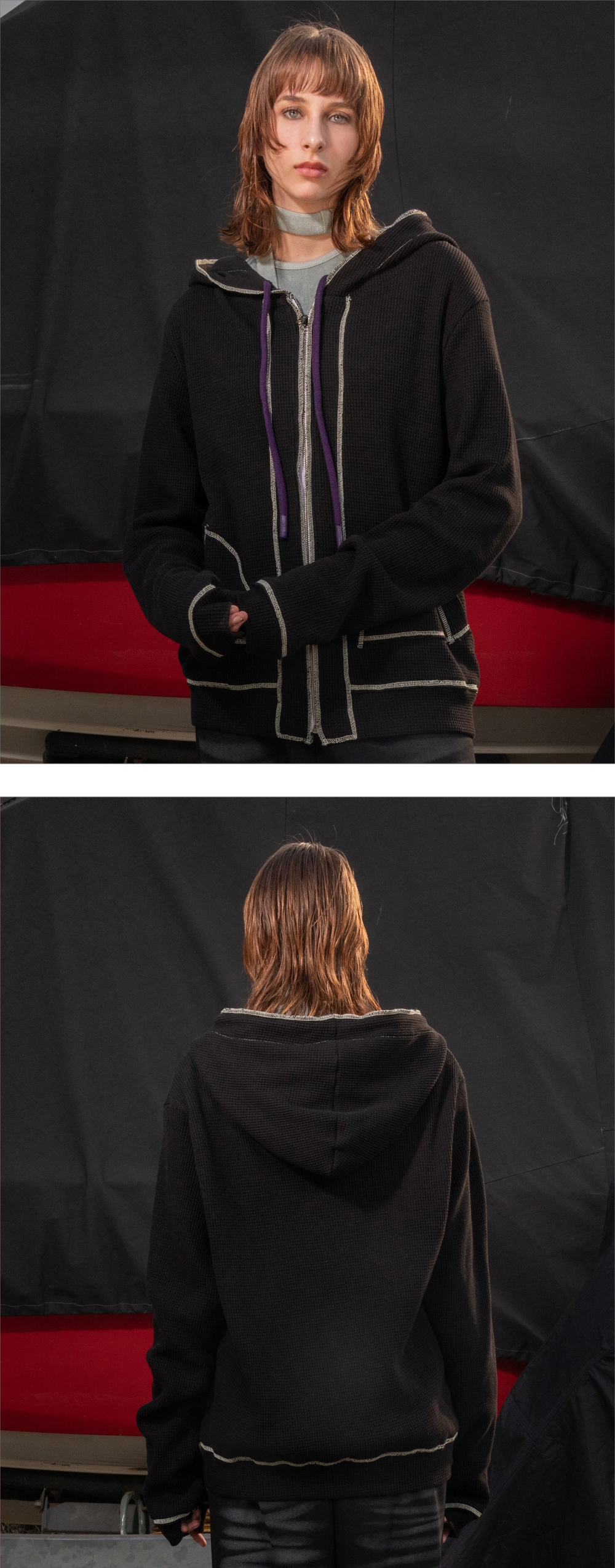 Kyo Soft Reversible Croiffle Hoody Zipup Black 쿄 소프트 리버시블 크로플 후디 집업 블랙