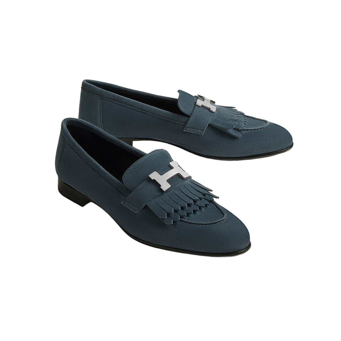 (W) Hermes Royal Loafers Goatskin & Palladium Bleu Celeste
