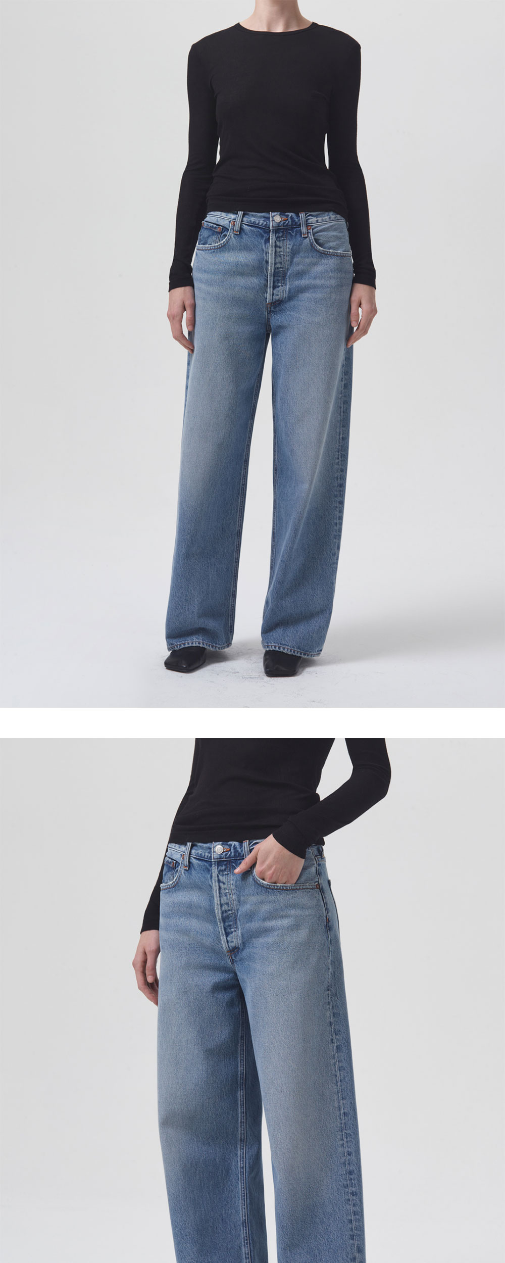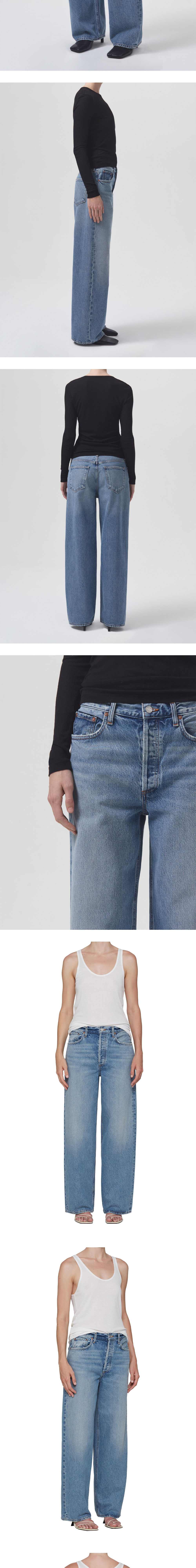 매우 편안하면서도 평평한 실루엣이 특징인 로우 배기 팬츠입니다. 신축성이 없는 에이골디의 시그니처 오가닉 코튼으로 제작되었습니다. *모델 : 177cm, 27 사이즈 착용