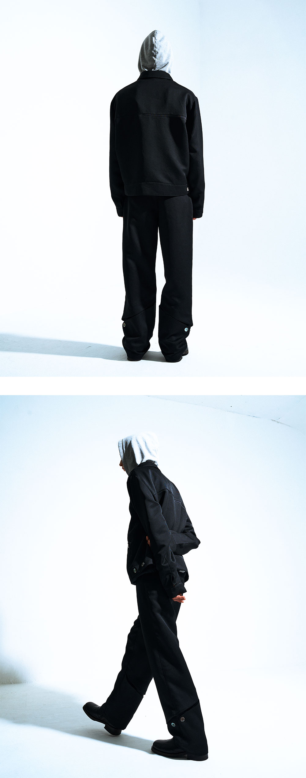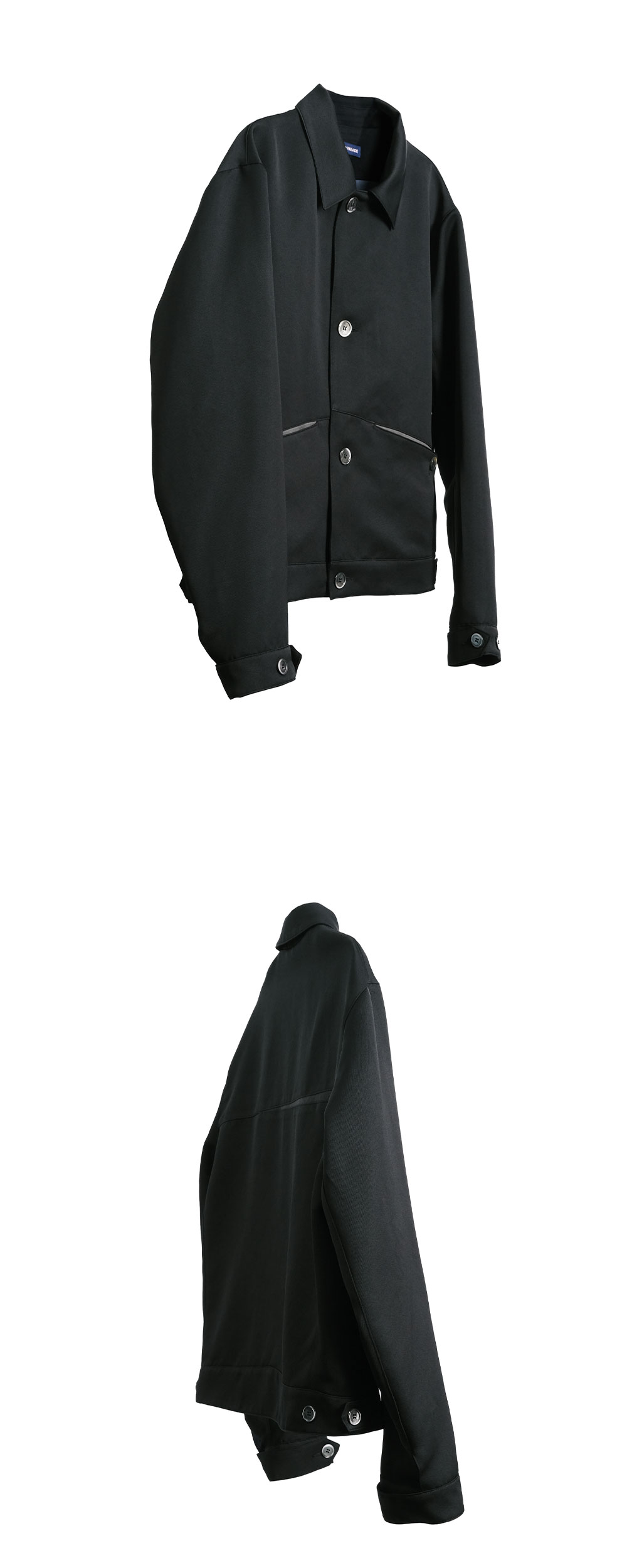 two seam pockets inner pocket adjustable button at cuffs adjustable button at back hem mother of pearl buttons gem buttons 100% polyester silky touch fabric italy fabric made in korea size(length/shoulders/chest/sleeve) 46 : 63cm/49.5cm/61cm/64.5cm 48 : 64.5cm/50.5cm/62cm/65cm 50 : 65.5cm/52cm/64cm/66cm the model is 177cm tall and is wearing a size 48
