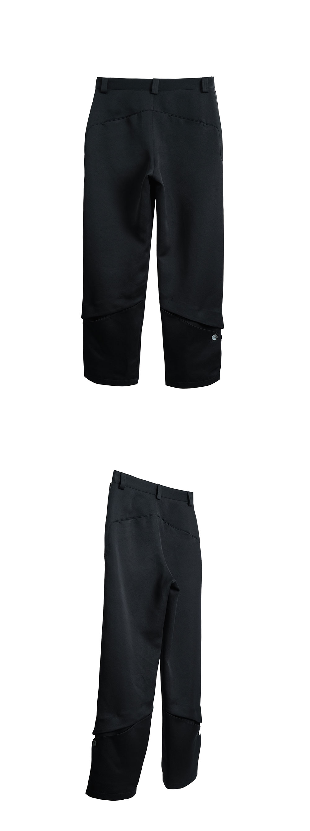 silky touch fabric two side pockets two back pockets ykk zipper fly adjustable buttons at hem mother of pearl buttons gem buttons 100% polyester italy fabric made in korea size(waist/thigh/outseam/legopening) 44 : 38cm/32cm/103.5cm/23cm 46 : 40.5cm/33cm/105cm/23.5cm 48 : 42.5cm/34cm/106.5cm/24cm the model is 177cm tall and is wearing a size 46
