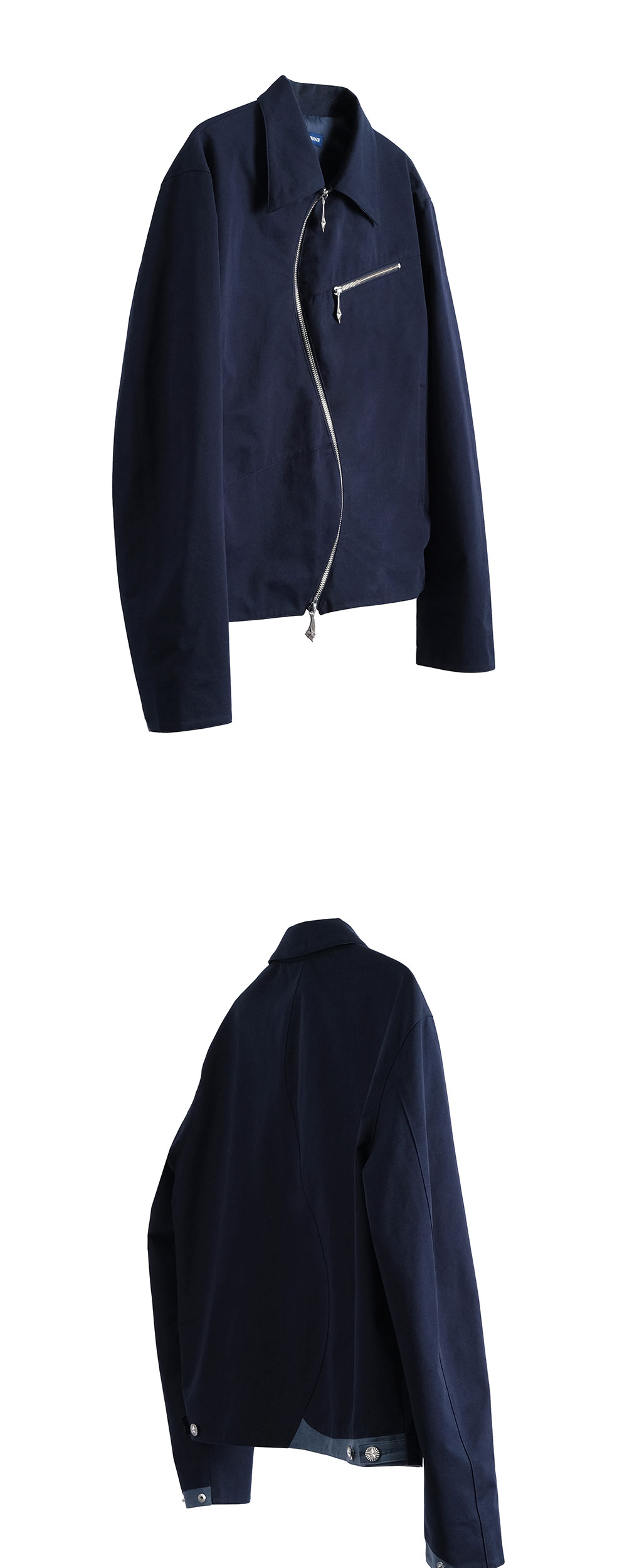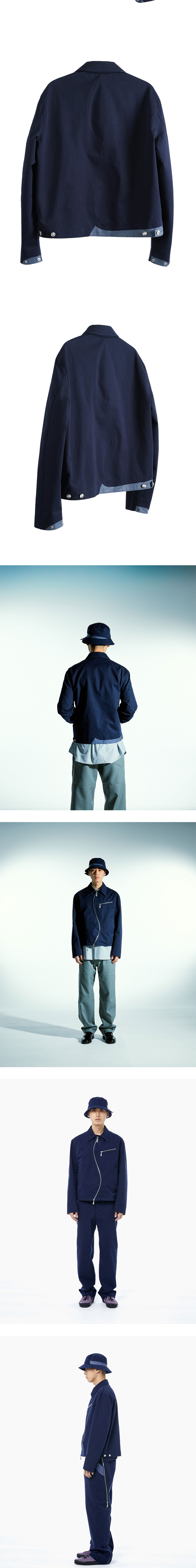 s curved front line ykk two way metal zipper zip pocket at chest star slider adjustable sanp button at cuffs cobrax snap two pocket inner pocket adjustable button tab at back hem star button tab main fabric : 38% cotton 62% nylon sub fabric : 55% cotton 45% polyester made in korea size(length/shoulders/chest/sleeve) 46 : 63cm/50cm/60cm/65cm 48 : 65cm/51cm/62cm/66cm the model is 181cm tall and is wearing a size 48