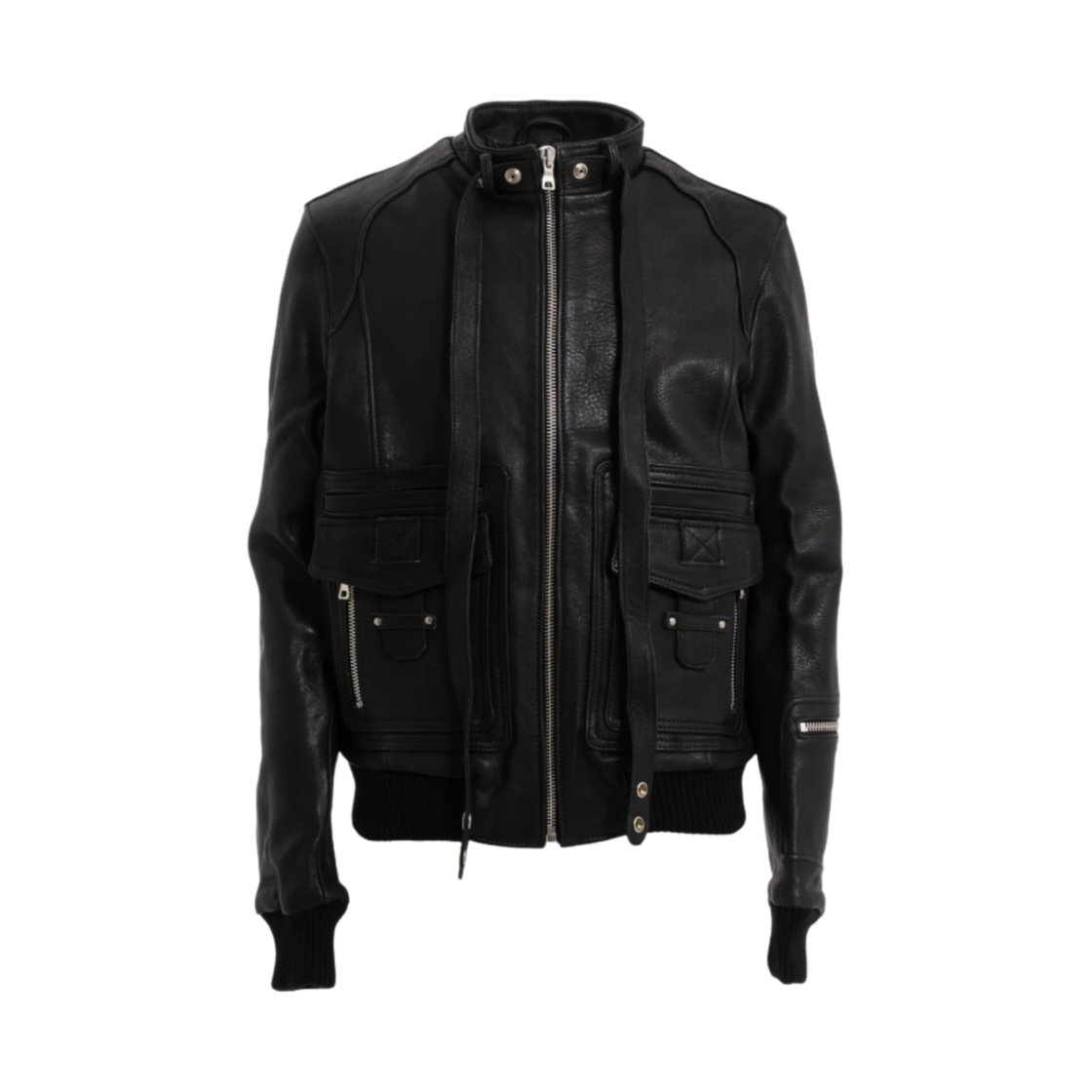 No/Faith Studios Snake Collar Zip Leather Jacket Black