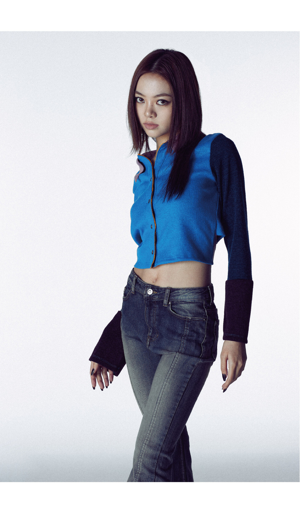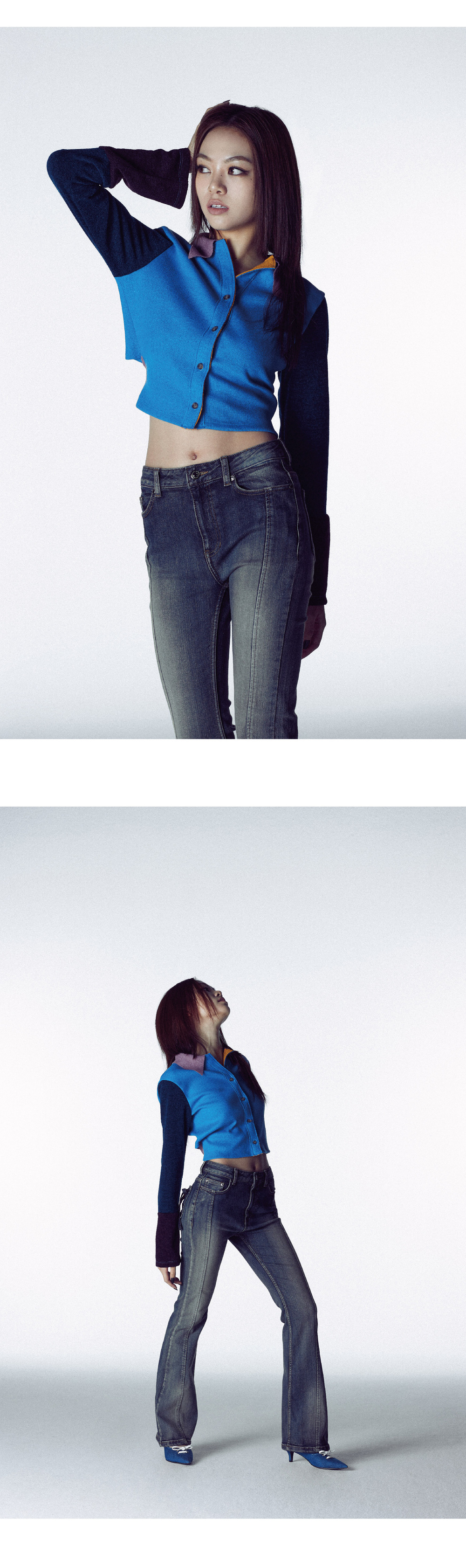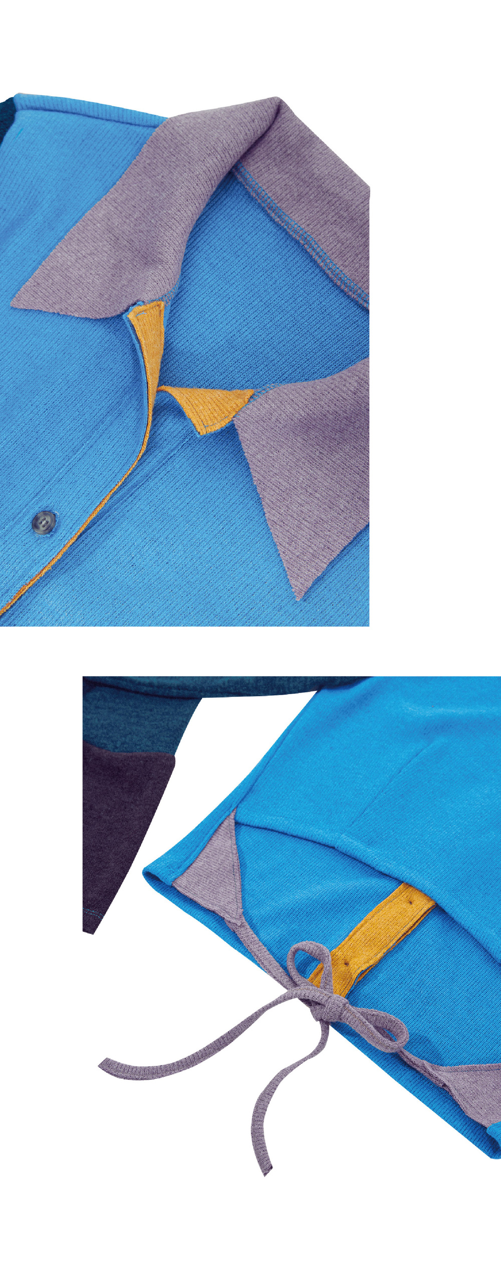 10/25 예약발송됩니다. - 멀티 컬러 배색 포인트 니트 셔츠 - 짜임이 튼튼한 메인 원단 & 얇고 부드러운 소매 원단 - 아래로 퍼지는 커프스