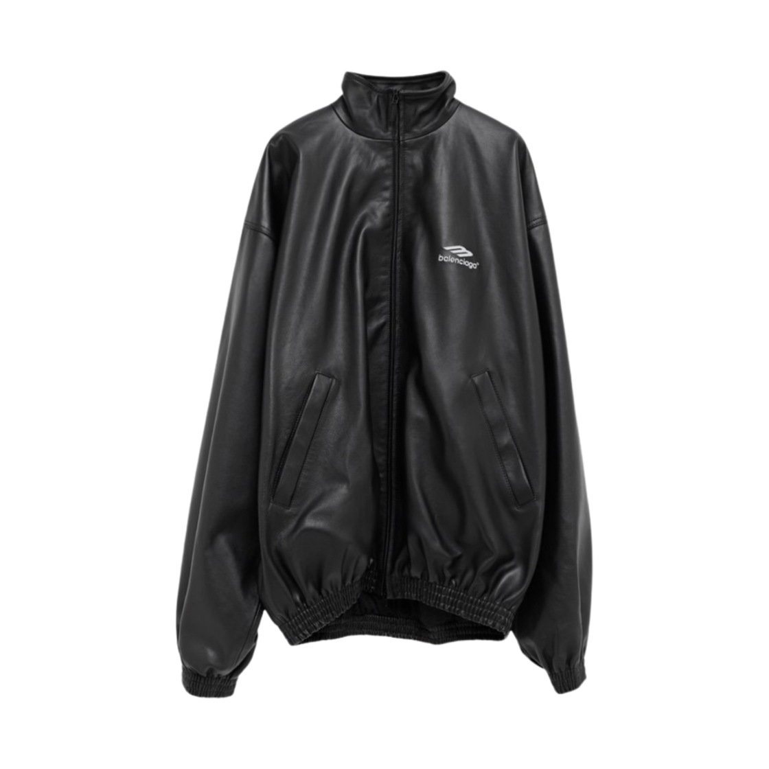 Balenciaga 3B Sports Icon Tracksuit Leather Jacket Black