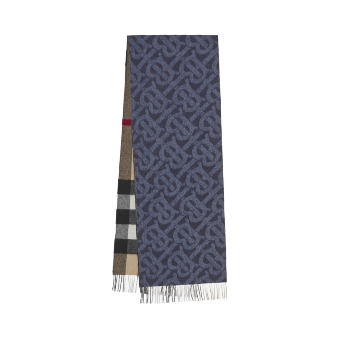 버버리 리버시블 체크 모노그램 캐시미어 머플러 인디고
