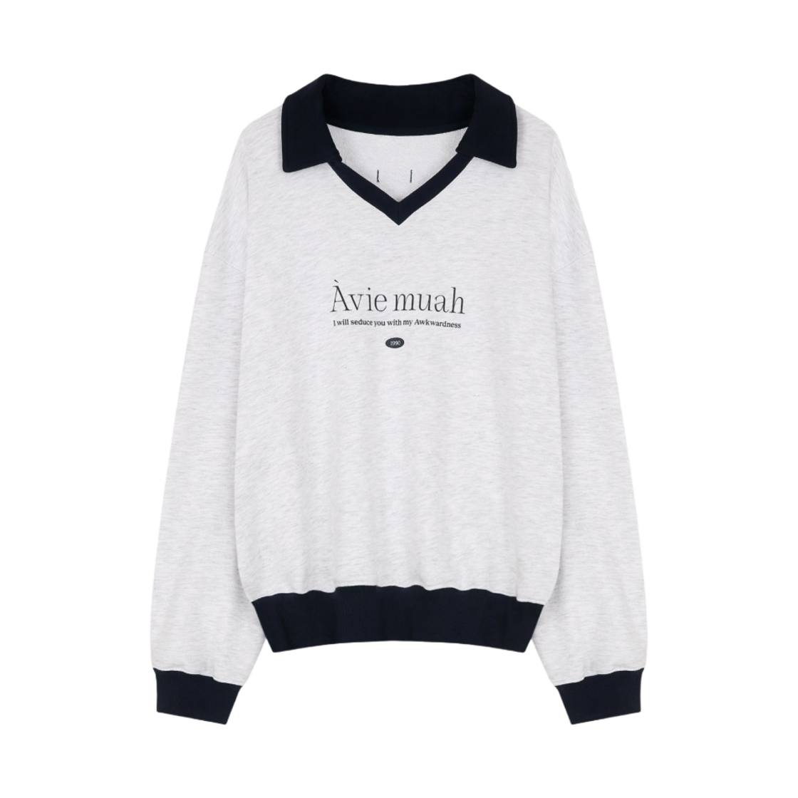 (W) Aviemuah Two-Tone Collar Sweatshirt Melange Gray
