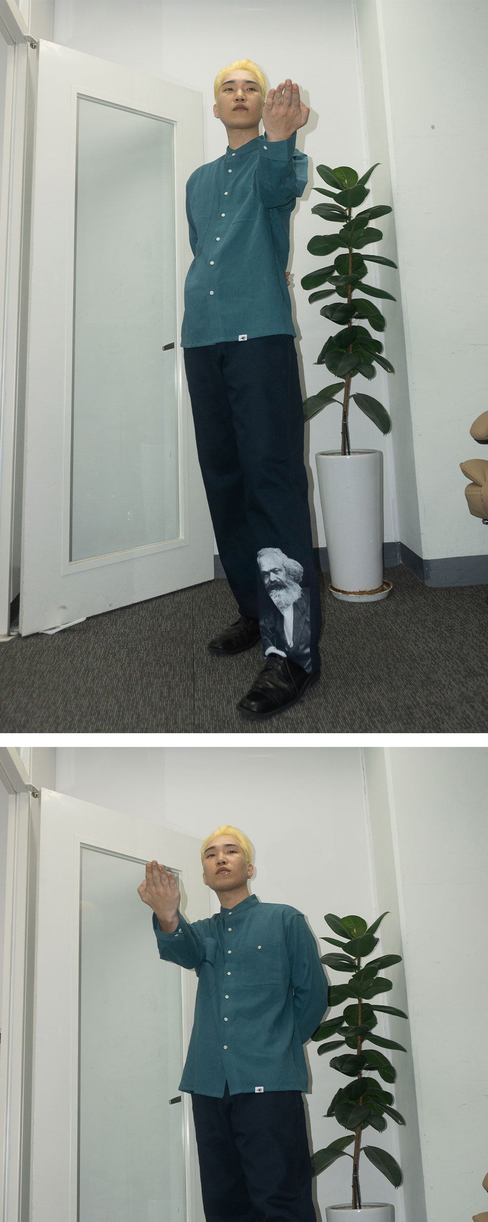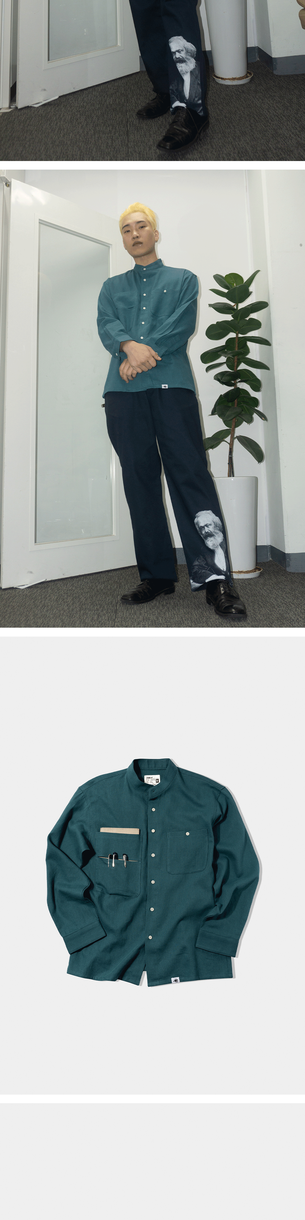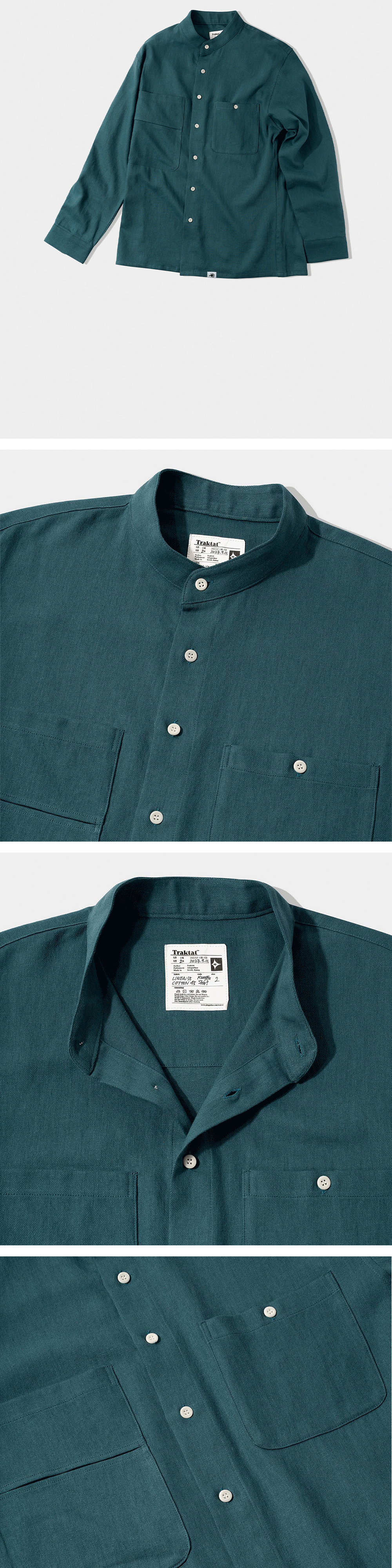 도서관에 앉아 책을 읽고 글을 쓰는 당신을 떠올리며 만들었습니다. 단상으로부터 시작해 한 편의 완성된 논문까지 도달하는 과정은 언제나 평탄하지 않습니다. 글을 완결시키기 위해서는 수많은 준비 단계가 필요합니다. 쿵푸 셔츠는 편안하고 따뜻한 도구로서 그 치열한 과정에 함께 할 것입니다. 책을 읽기 전 마시는 따뜻한 커피와, 글을 쓰기 전 펜촉에 묻히는 잉크처럼요. - 린넨 55%, 면 45% - 바이오 효소 가공 - 세미 루즈 핏 - 2-Way 스탠드 칼라 - 1판 1쇄 메인 라벨 : 원단 조성과 사이즈 등을 직접 작성하여 개체마다 조금씩 다릅니다. - 키클롭스 포켓 : 키클롭스의 눈을 닮은 절개 포켓으로 다양한 활용이 가능합니다. - 넥라인 이중덧댐처리 - 각인된 너트 단추 사용