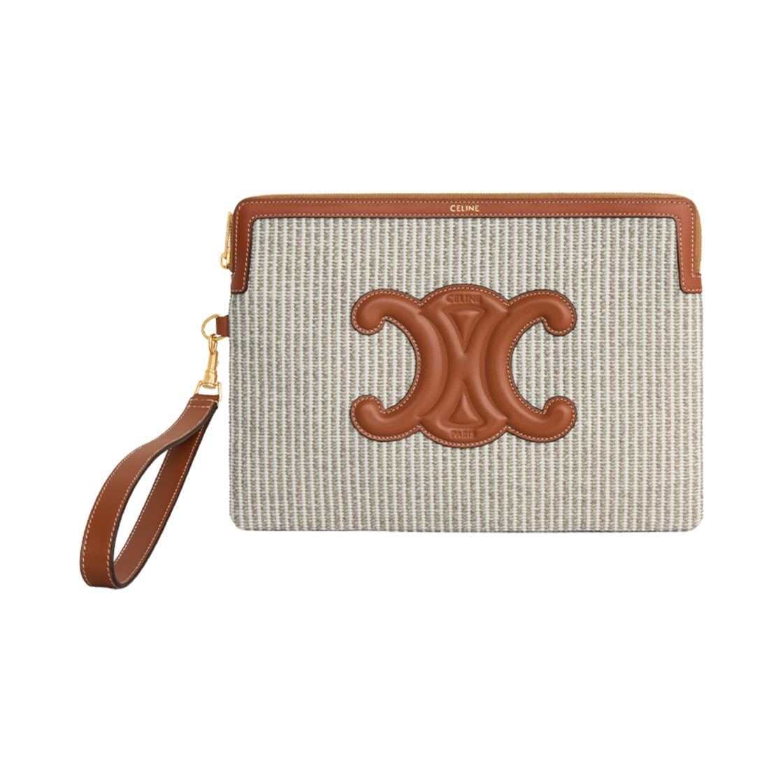 셀린느 스몰 파우치 스트랩 퀴르 트리옹프 스트라이프 텍스타일 카프스킨 베이지