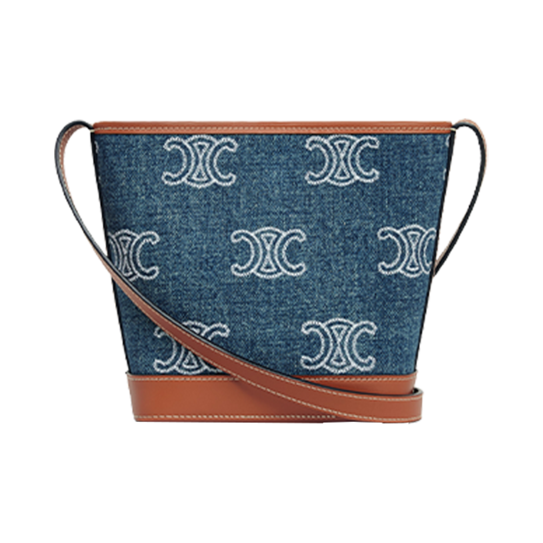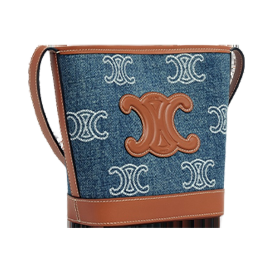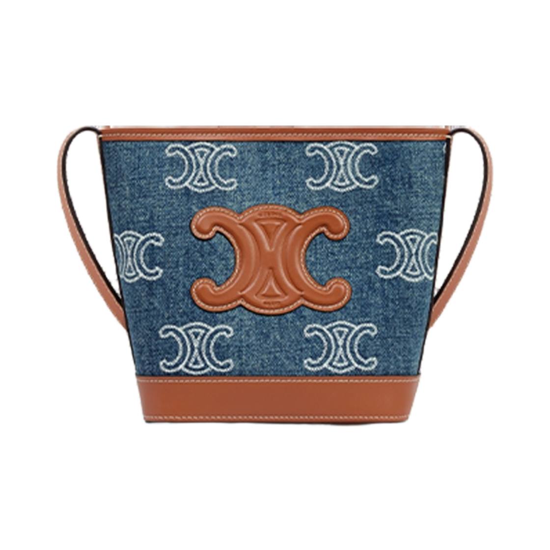 Celine Mini Bucket Cuir Triomphe in Denim with Triomphe All-Over Embroidery Calfskin Navy Tan