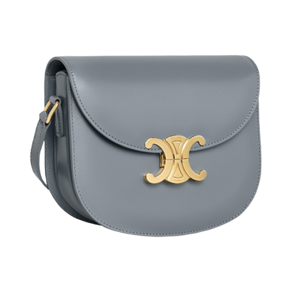 Celine Besace Clea in Shiny Calfskin Blue Grey