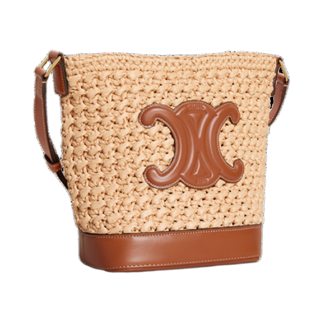 셀린느 스몰 버킷 퀴르 트리옹프 라피아 카프스킨 내츄럴 탄