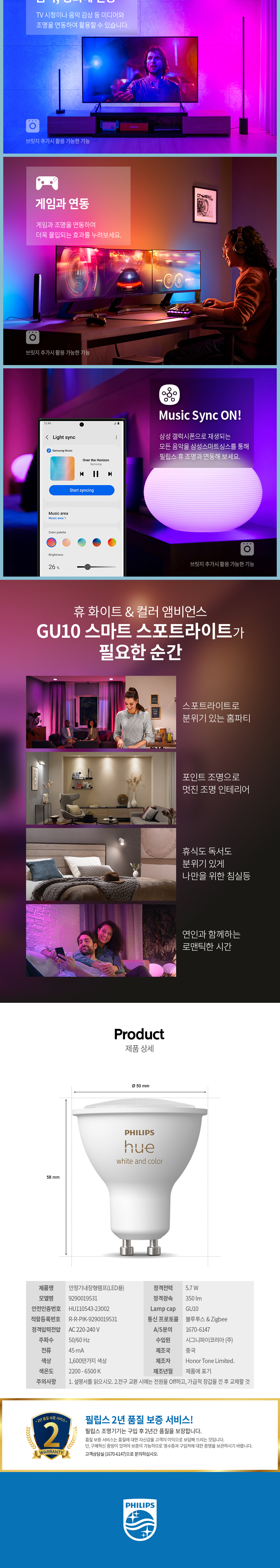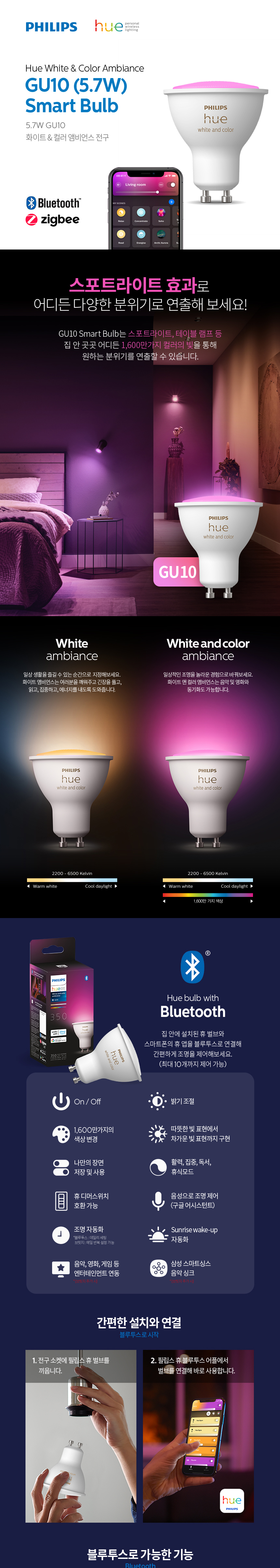 필립스 휴 화이트&컬러 앰비언스 GU10 4.1W 스마트 전구