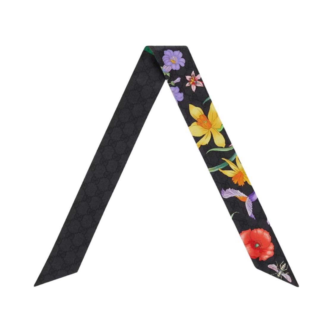 (W) 구찌 플로라 프린트 실크 트윌 넥 보우 블랙 멀티컬러