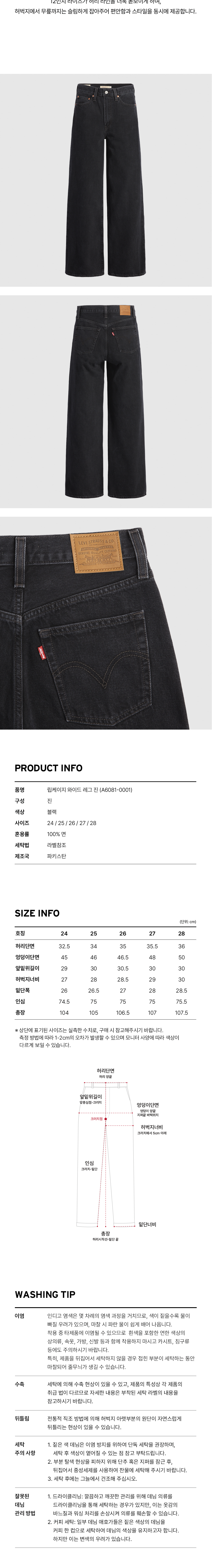리바이스 우먼 립케이지 와이드레그 진 블랙