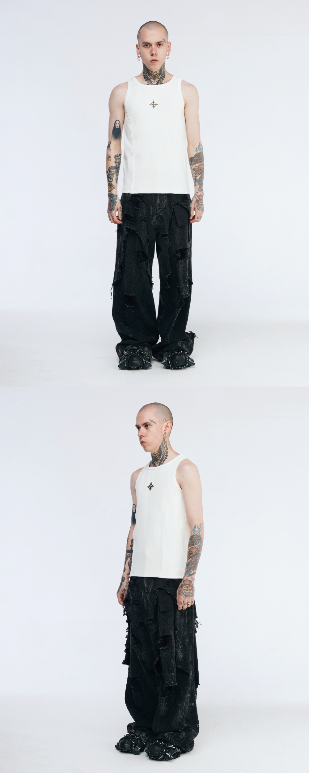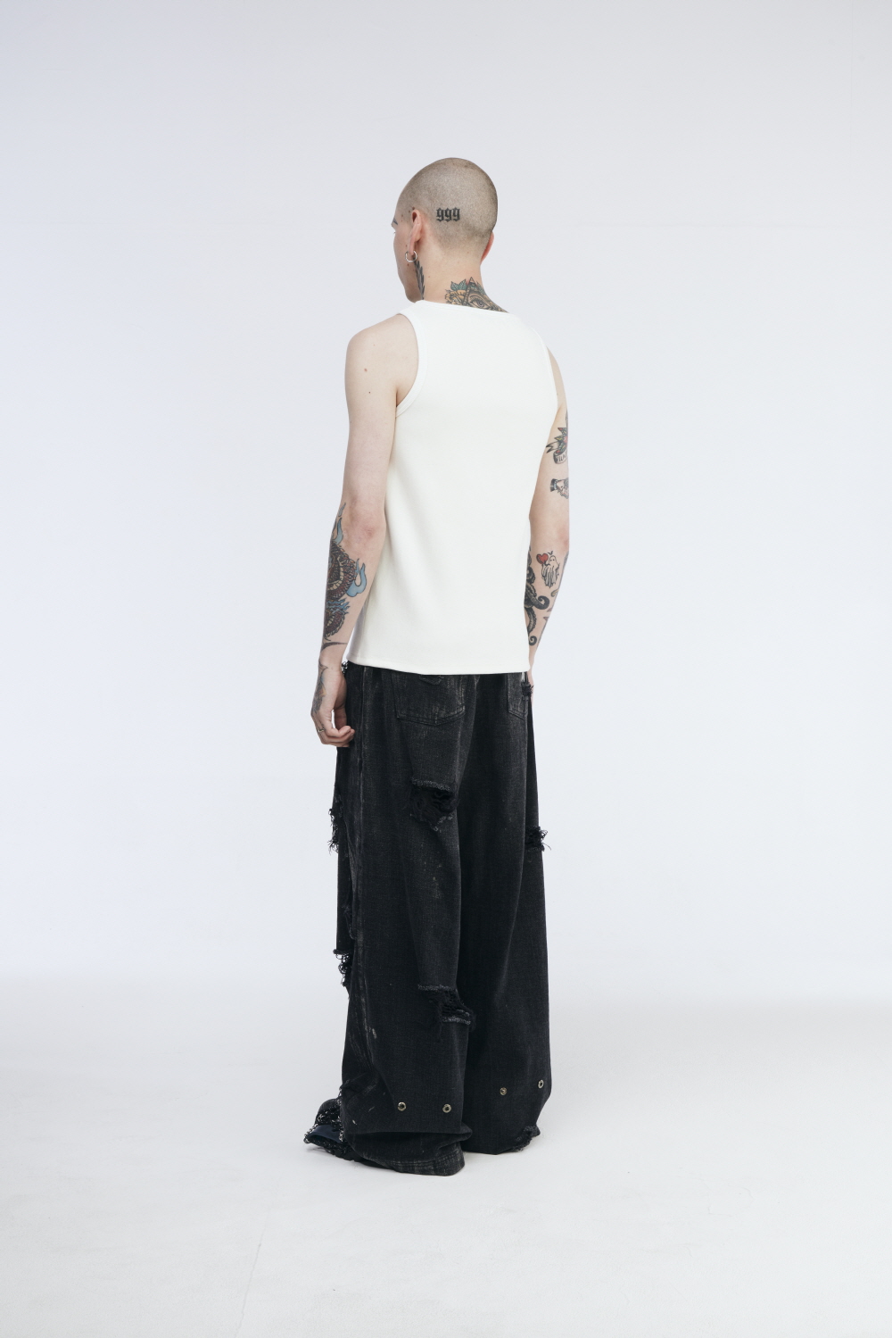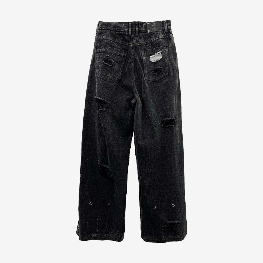 비엘알 디스트로이드 데님 팬츠 블랙 앤 블랙