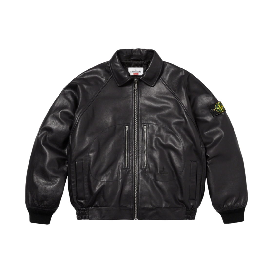 슈프림 x 스톤 아일랜드 레더 봄버 자켓 블랙 - 23FW