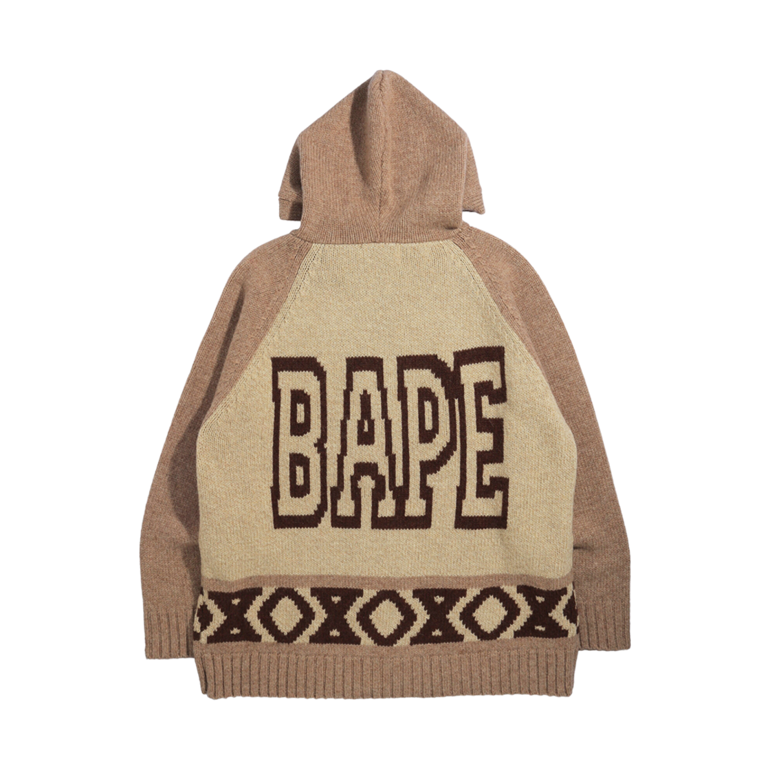 BAPE Ape Head Knit Zip Hoodie Cardigan Camel
