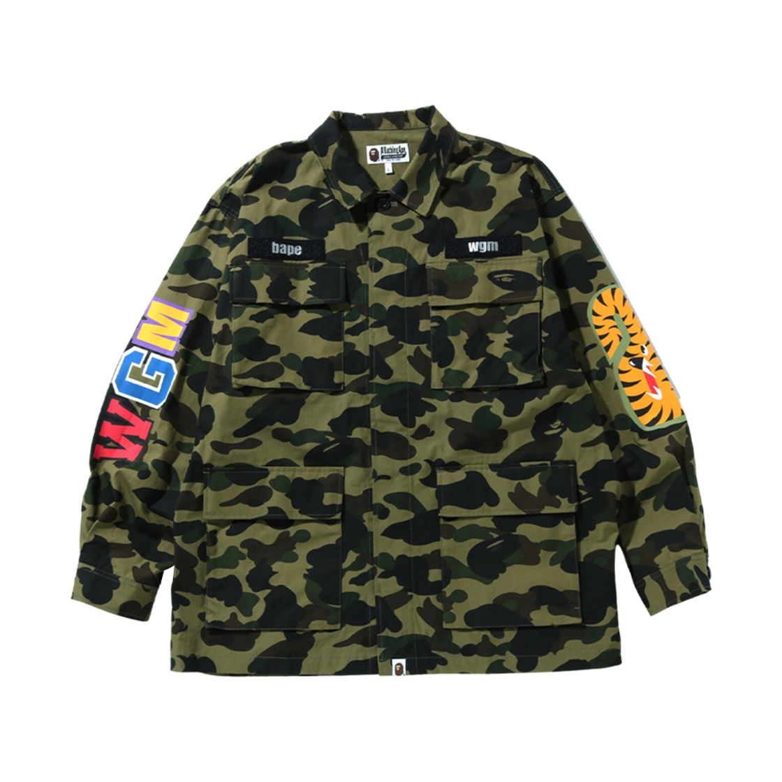 BAPE 1st Camo Shark Relaxed Fit Military Shirt Army Green