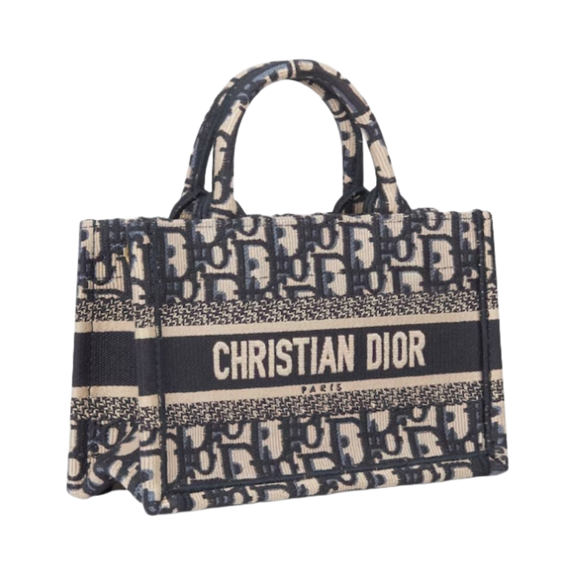 Mini Dior Book Tote with Strap Blue Beige Oblique Embroidery