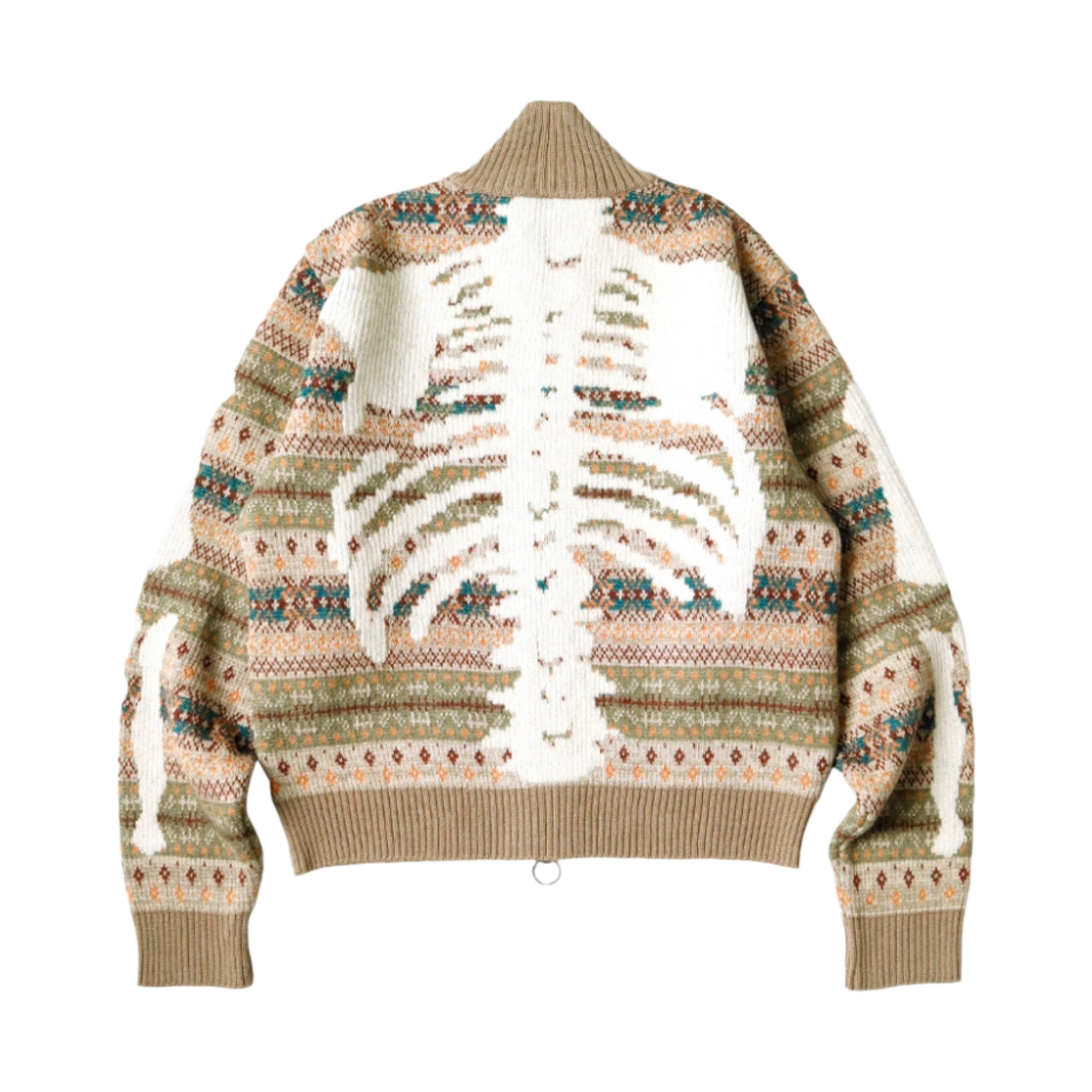 Kapital 7G Wool Fair Isle Bone Zip Short Cardigan Orange